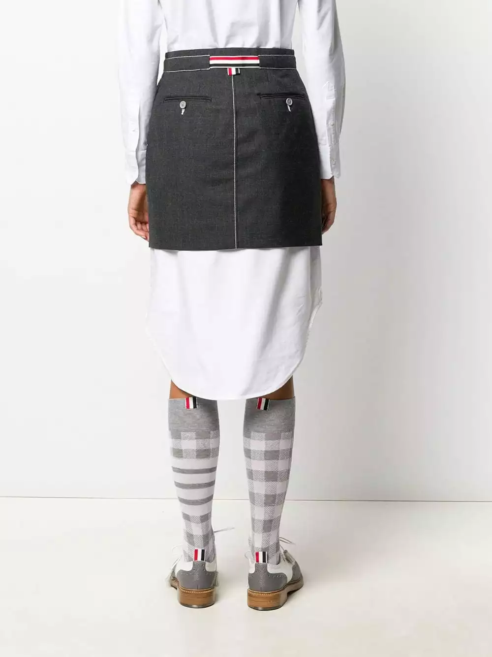 Saved by the bell! This tie waist mini sack skirt will fulfil all your fashion fantasies; with a tricolour stripe waist tie to add that final Thom Browne flourish. What’s not to love?