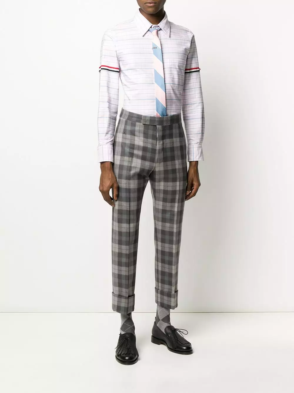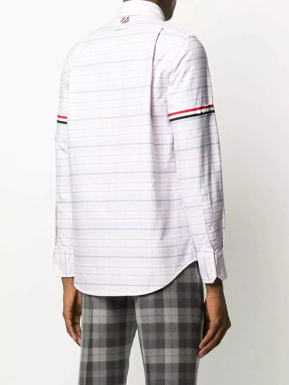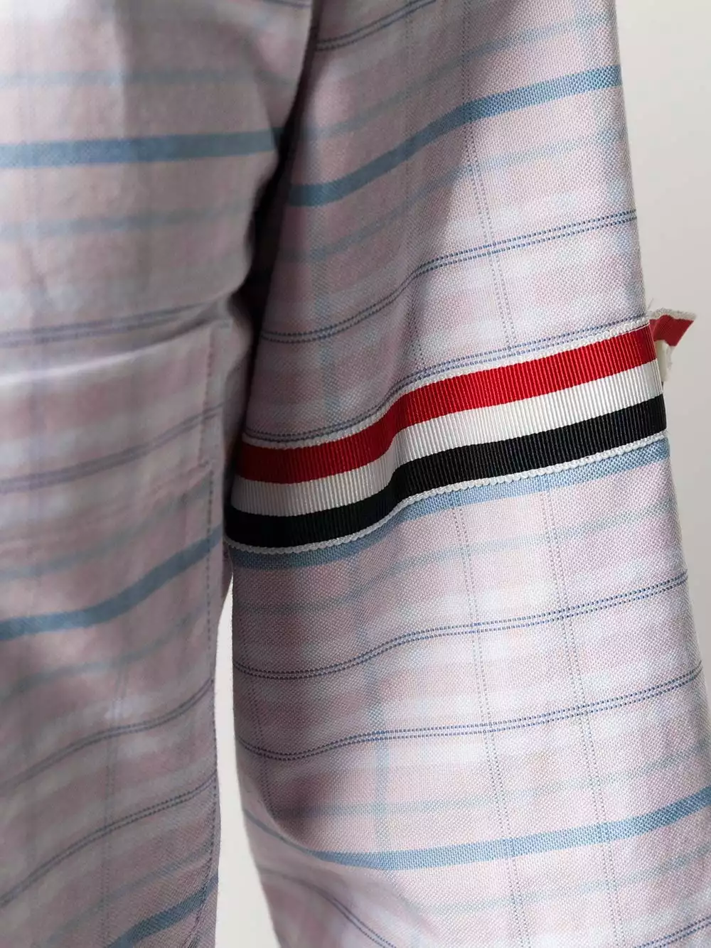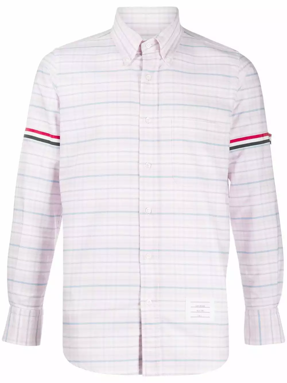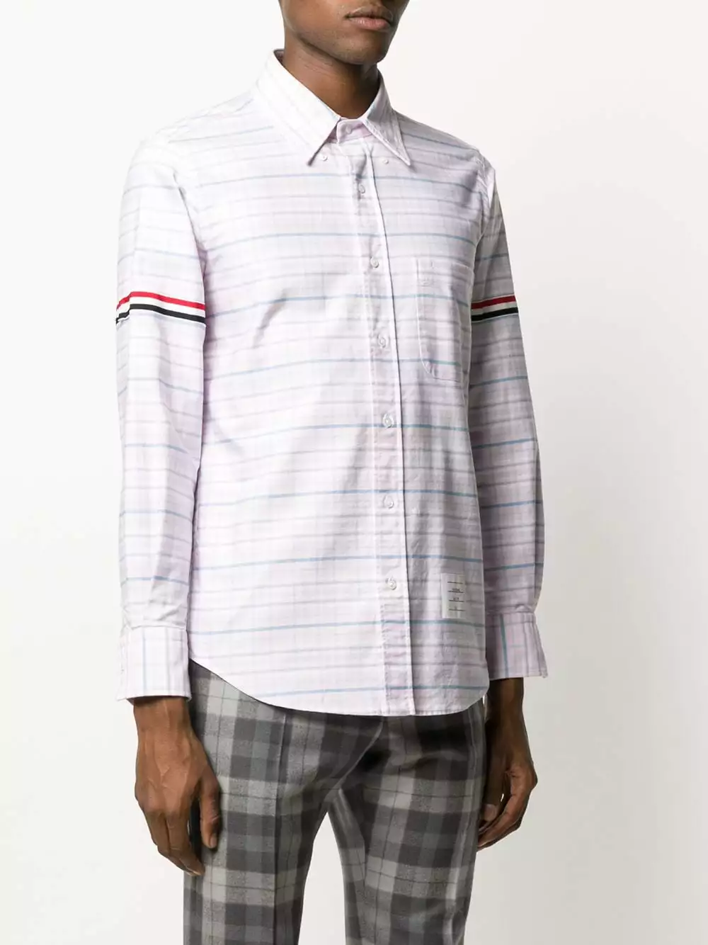 Like chess, streetstyle is a strategy game that only a select few can master. This multicoloured supima cotton 4-Bar armband checkered shirt from Thom Browne looks like a winning move. Checkmate! Featuring a front button placket, long sleeves, a classic collar, button cuffs, a curved hemline, a front logo patch, a signature tri-colour striped trim and a signature tri-coloured armband at the sleeves.