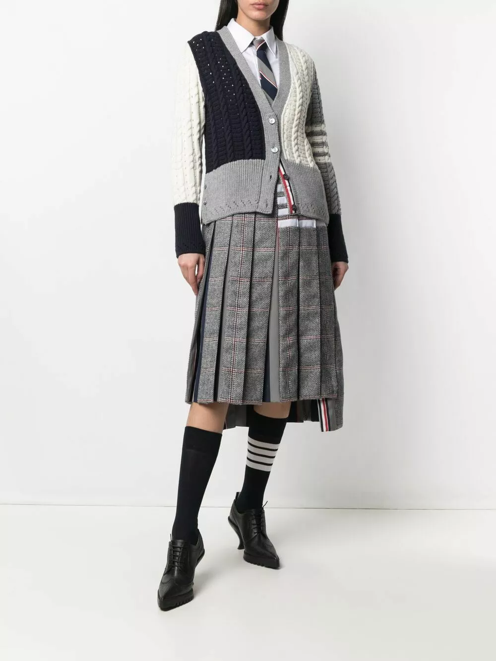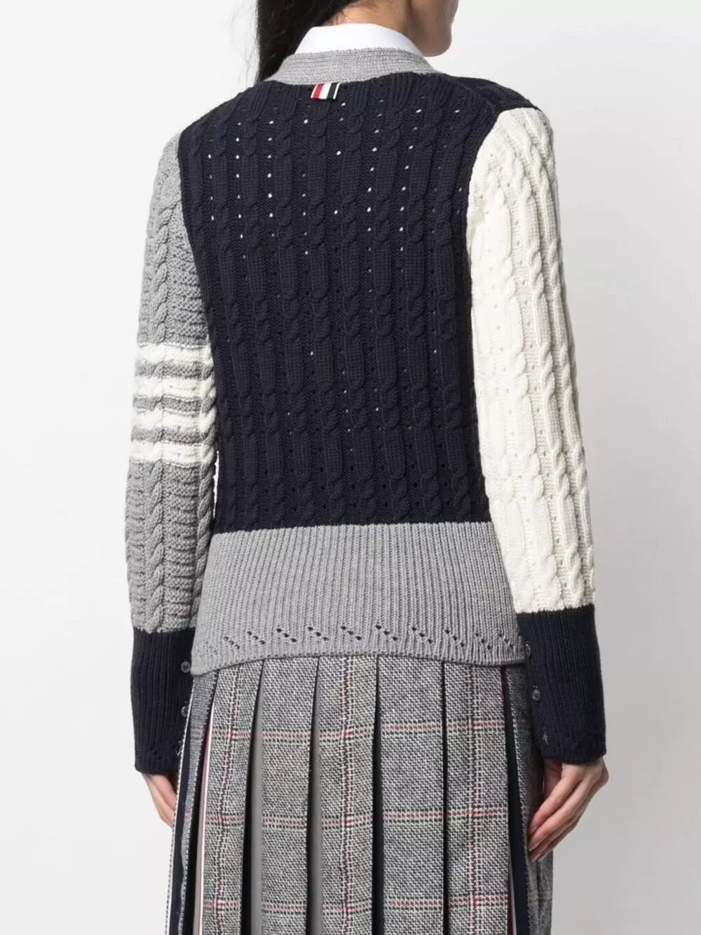 Thom Browne has got your cold-weather look sorted. Crafted from merino wool, this piece will add a preppy touch to your knitwear collection. Wrap up warm.