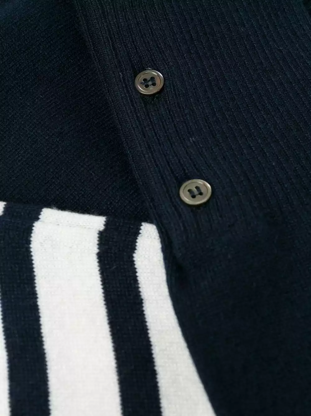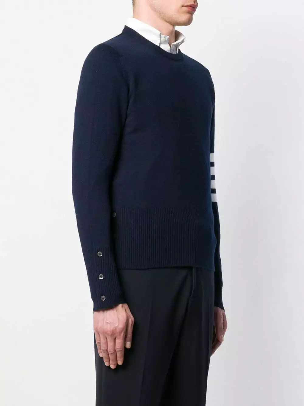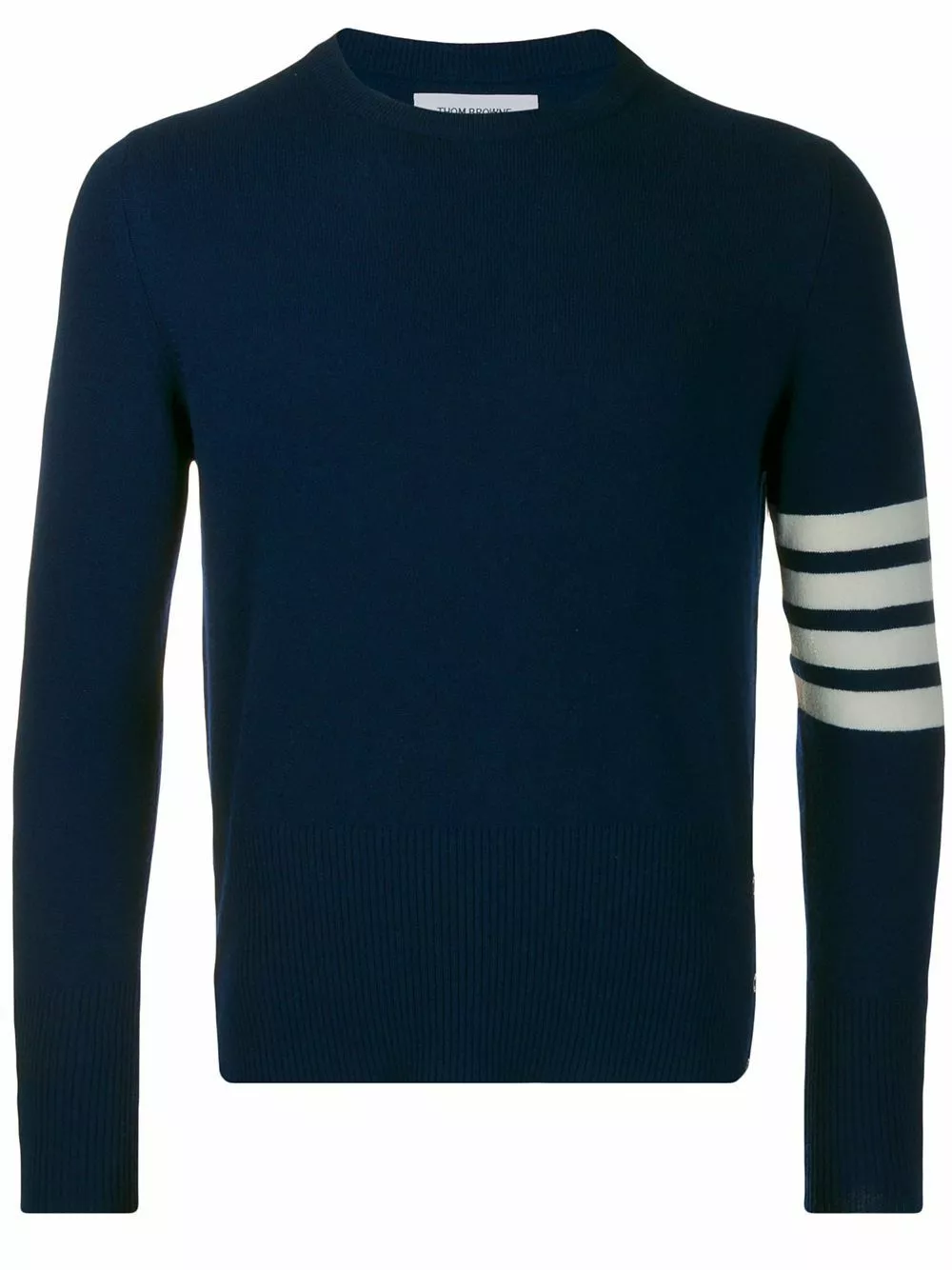 Casual and comfortable. This knitted jumper from Thom Browne is crafted from soft navy cashmere for an elegant take on everyday dressing. Layer up and look great.