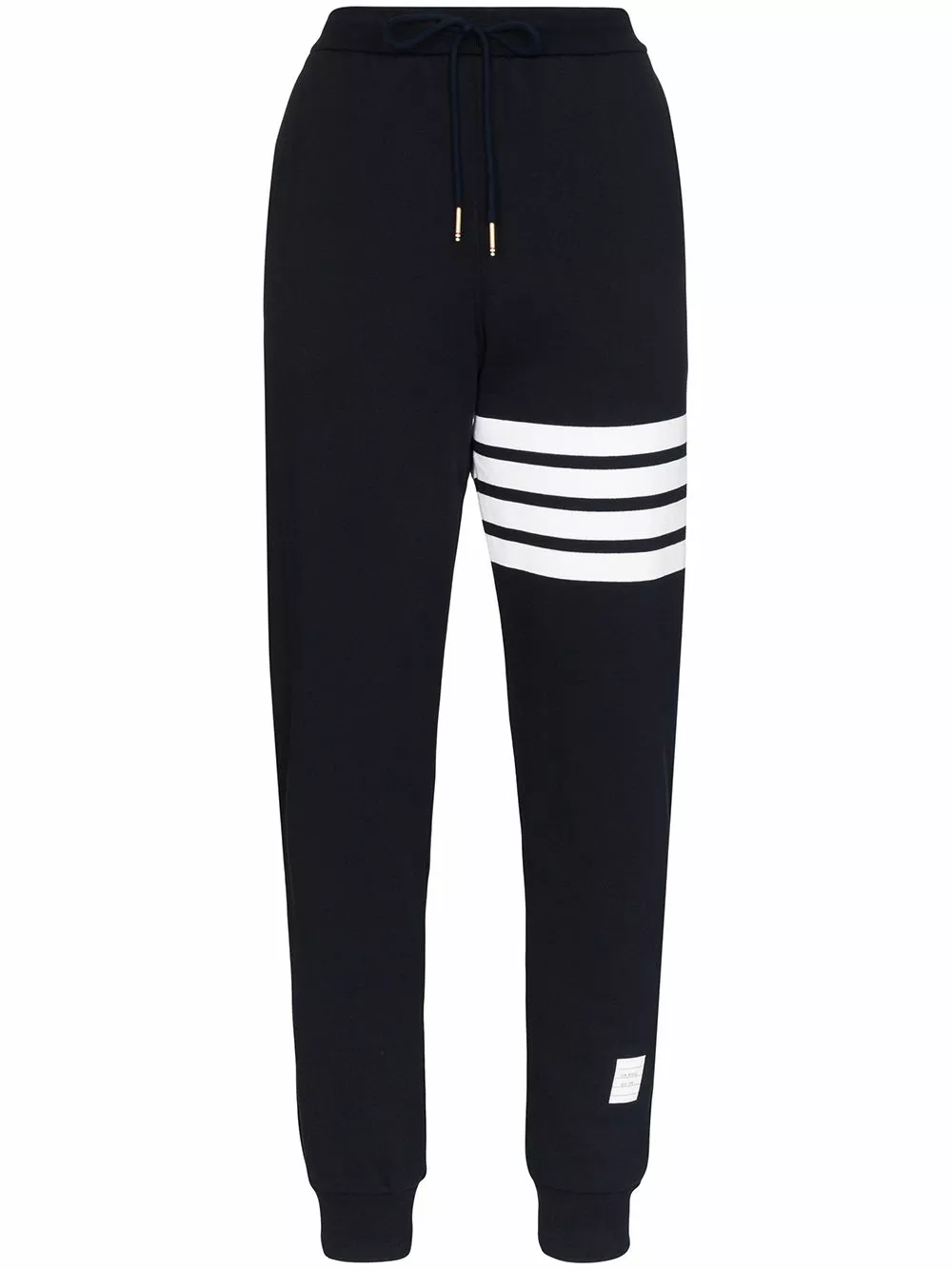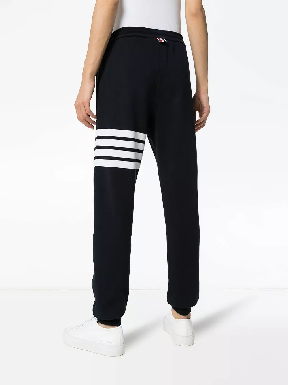 The master of tailoring also has laid back days, or else why would Mr Thom Browne create these 4-bar classic cotton sweatpants? Sometimes, chilling in the couch wearing your suit can get a bit uncomfortable. Featuring a drawstring waist, side seam pockets, a tapered leg and ribbed cuffs.