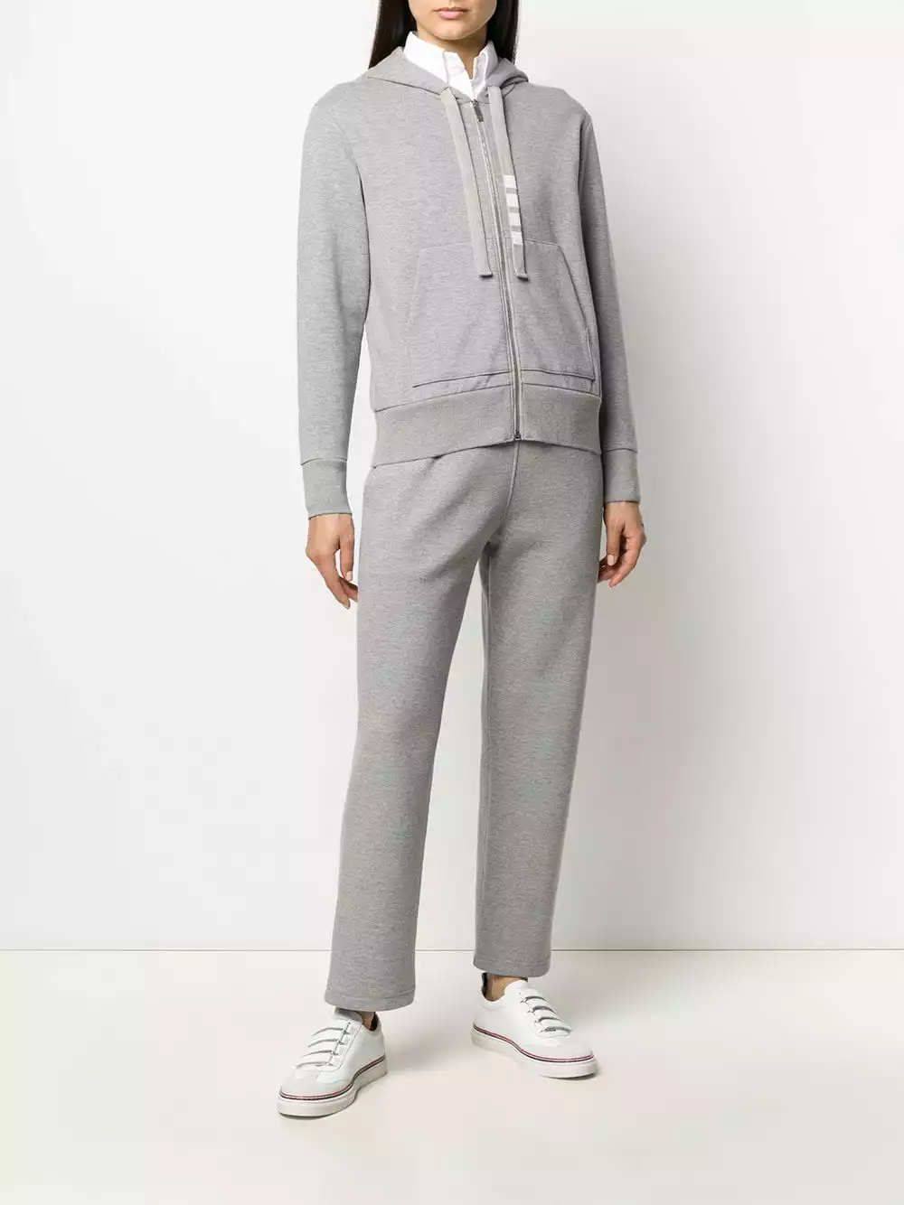 Updating your basics with the sharpest craftsmanship in the fashion world became as easy as it should be with this light grey cotton 4-Bar compact double-knit hoodie from Thom Browne. Featuring a slim fit, ribbed details, a drawstring hood, long sleeves, kangaroo pockets and a four-bar stripe detail.