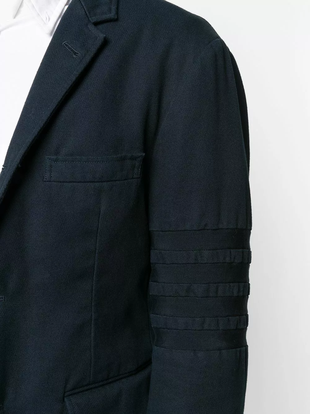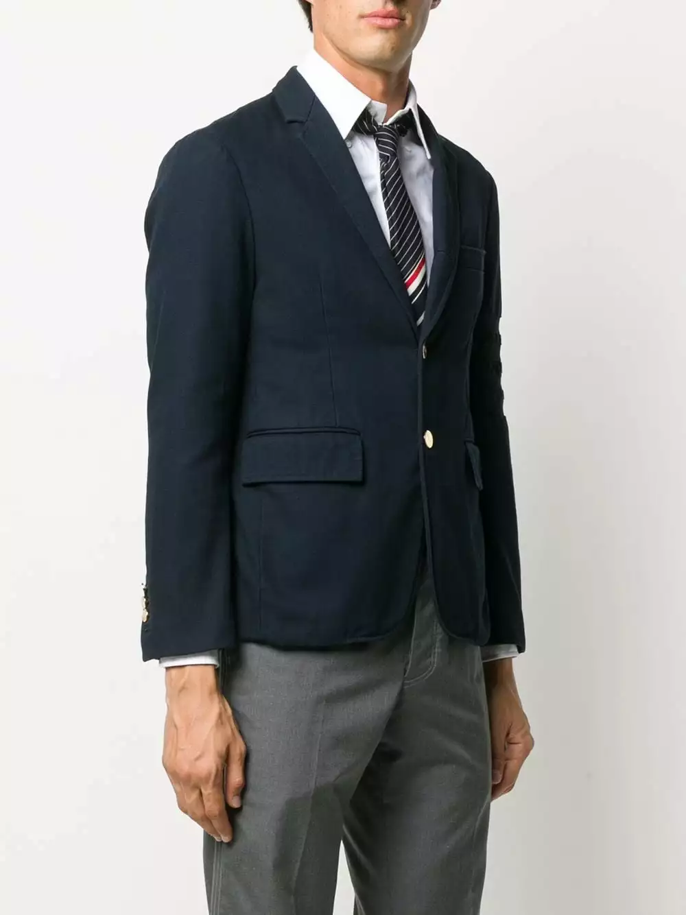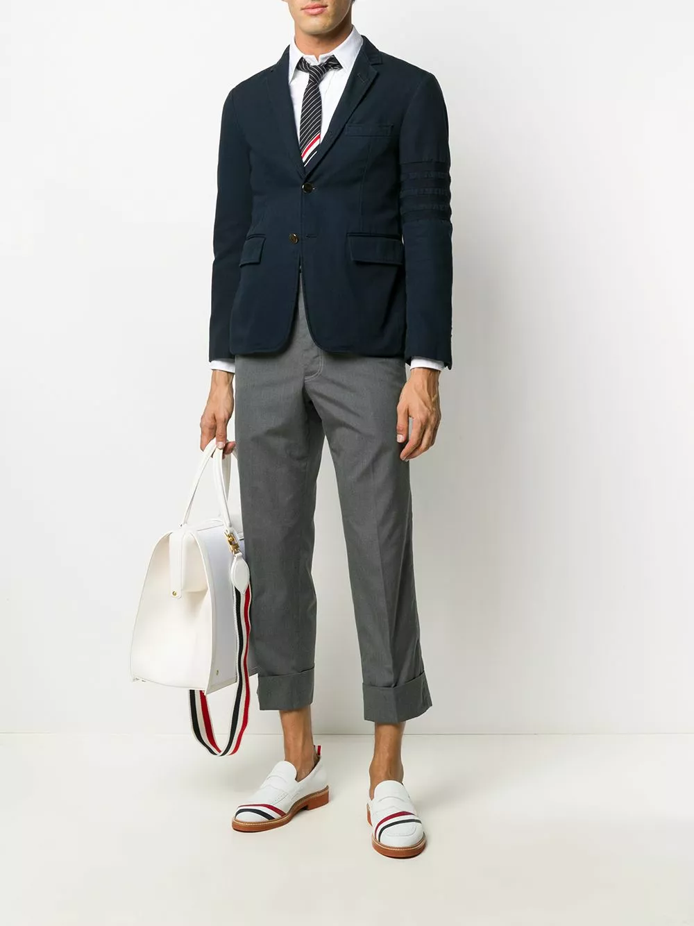 Sport quintessential British suiting in Thom Browne. Classic construction is made with a modern twist. Top notch.