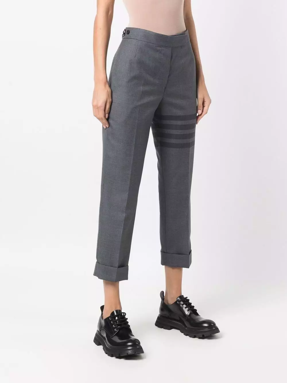 Mirroring the clean lines and signature house codes of the American brand, these cropped wool-blend trousers are presented as part of Thom Browne’s AW21 collection. Detailed with the house’s RWB grosgrain loop and 4-Bar motif, the pair brings fashion knowledge to the scene.