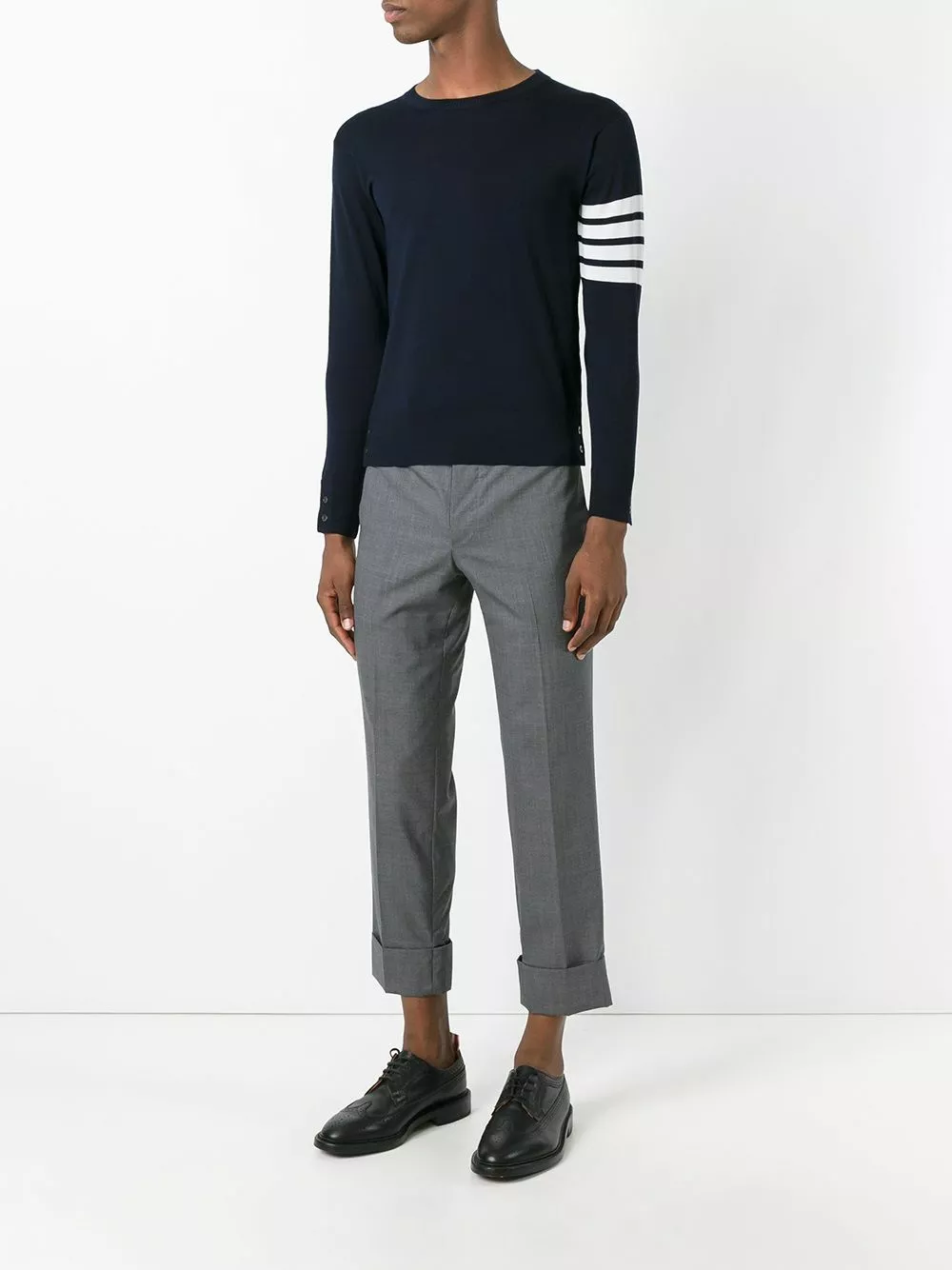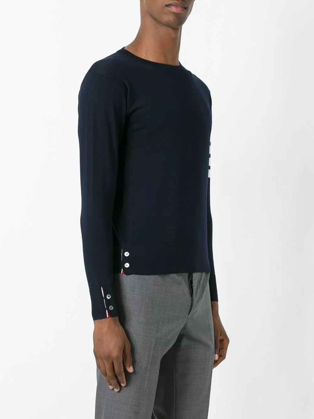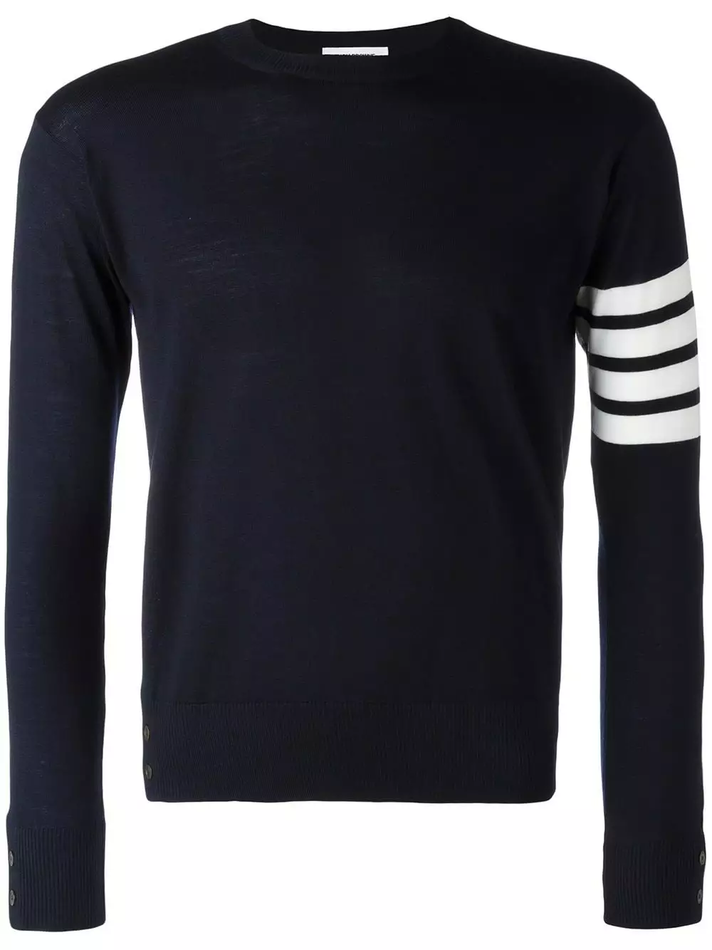 Effortless preppy style? It must be Thom Browne. Make this 4-Bar jumper your new uniform. Featuring a ribbed crew neck, long sleeves, a straight hem, button cuffs, decorative buttons, a 4-Bar tab and a 4-Bar stripe. This item is true to fit.