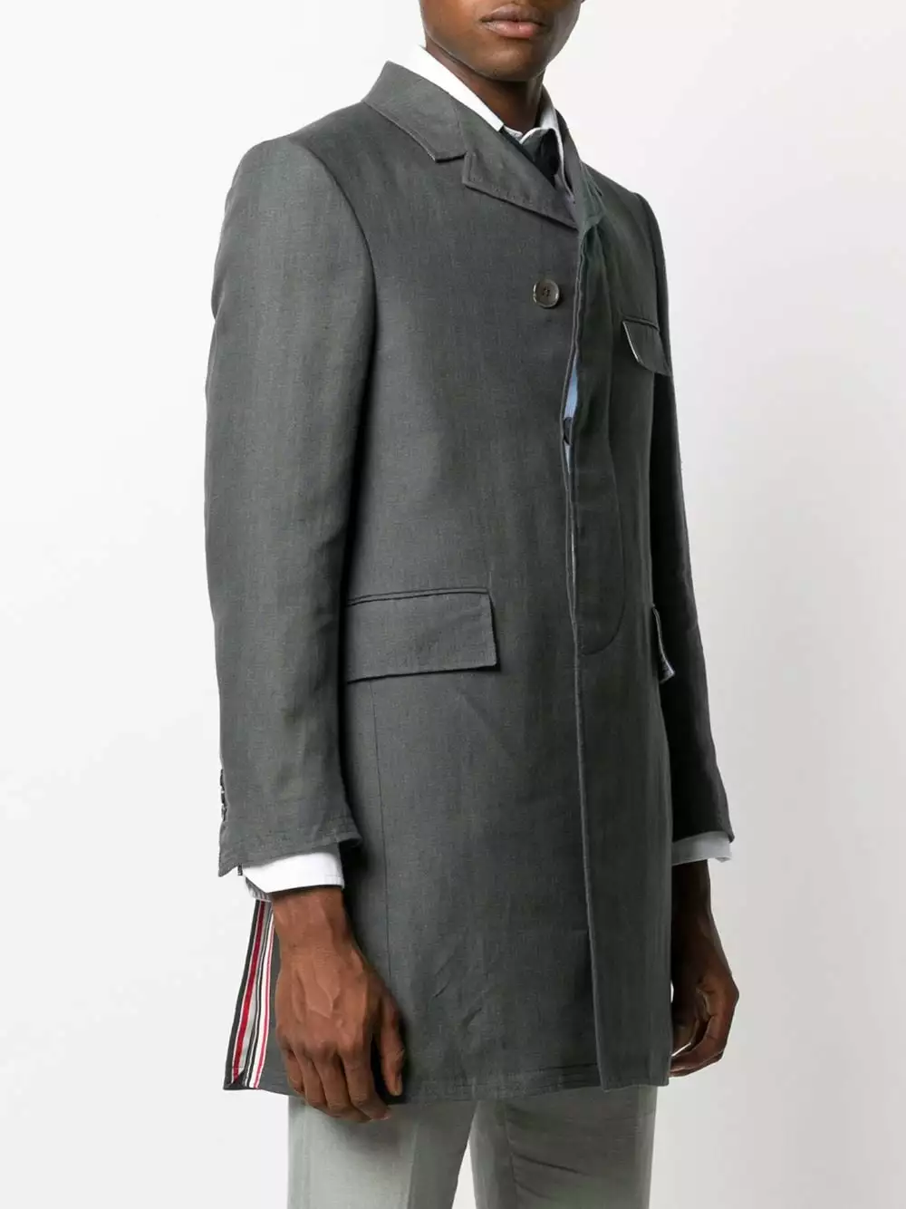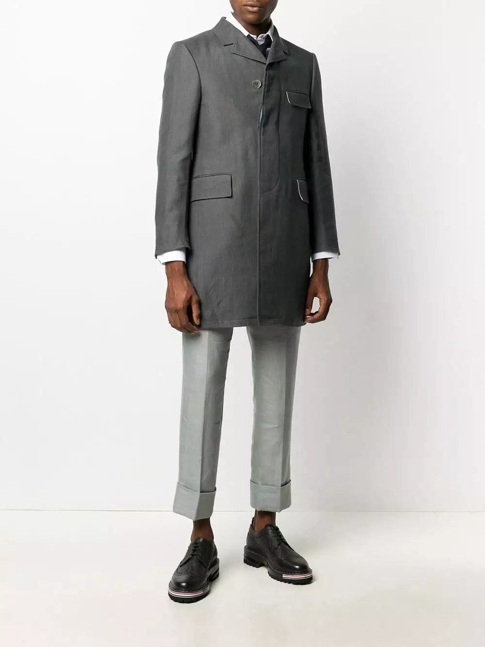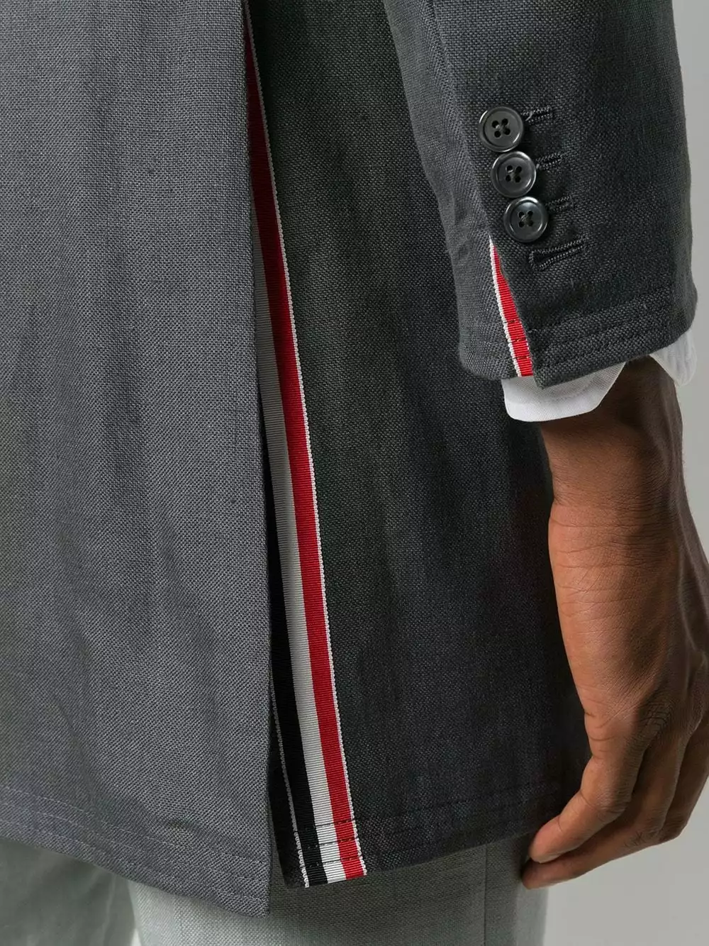 Comfortable and classic. You can’t go wrong with a tailored coat, especially when it comes from a soft knit like this linen 4-Bar engineered coat from Thom Browne. Invest in a staple.