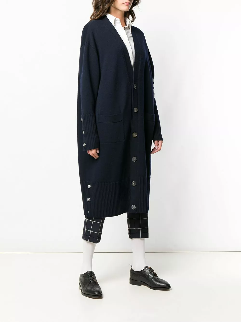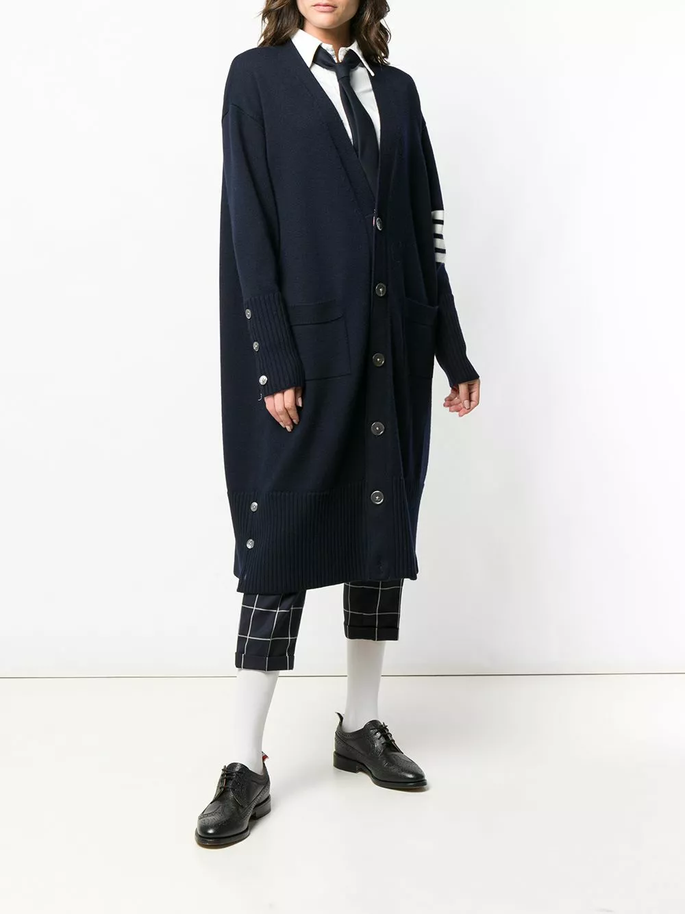 This 4-Bar stripe cardi-coat is all that you’ll want to pull on when the weather gets cooler. And who could blame you? This oversize Thom Browne piece gives knitwear a new lease of life.