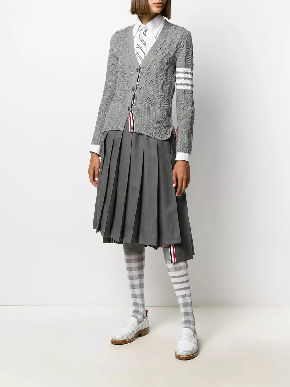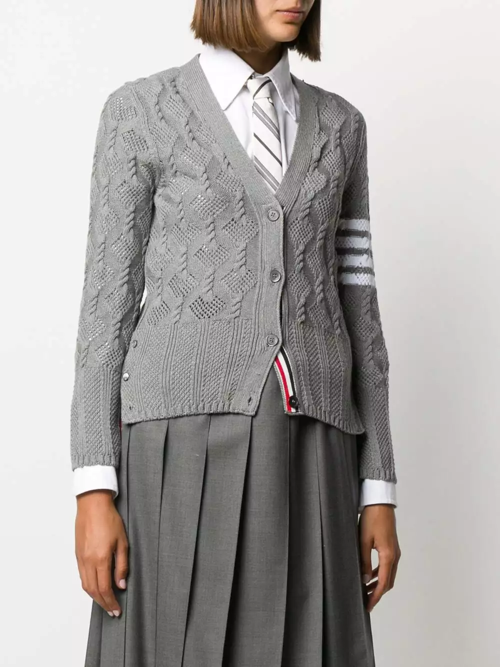You’re already a fan of Thom Browne’s designs. Known for his innovation in tailoring, a modern spin is now placed on knit patterns. Featuring a V-neck, front button fastening, fan cable knit and signature tricolour stripe tab. What’s ‘knit’ to love?