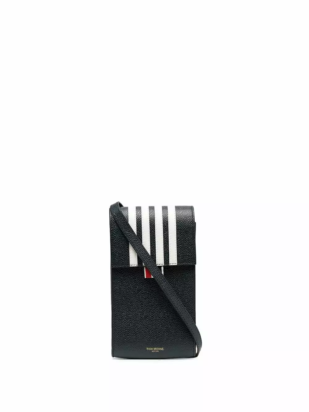 Your phone is an extension of yourself (and your arm). Make sure it looks almost as good as you in this 4-bar flap phone holder. Incoming call from Thom Browne. Featuring an adjustable shoulder strap, a foldover top with magnetic closure, gold-tone hardware, a signature 4-bar motif and a signature RWB tab.