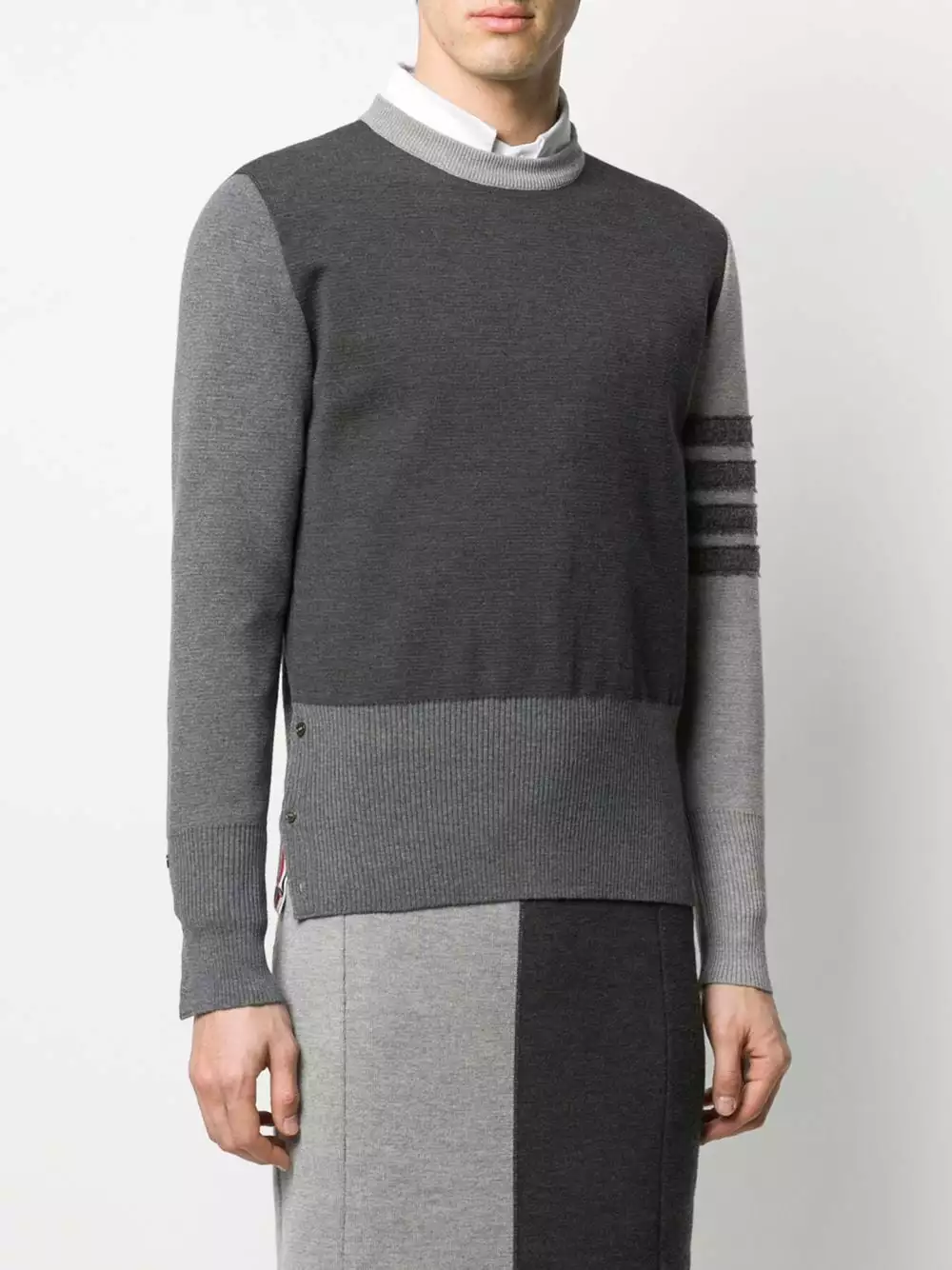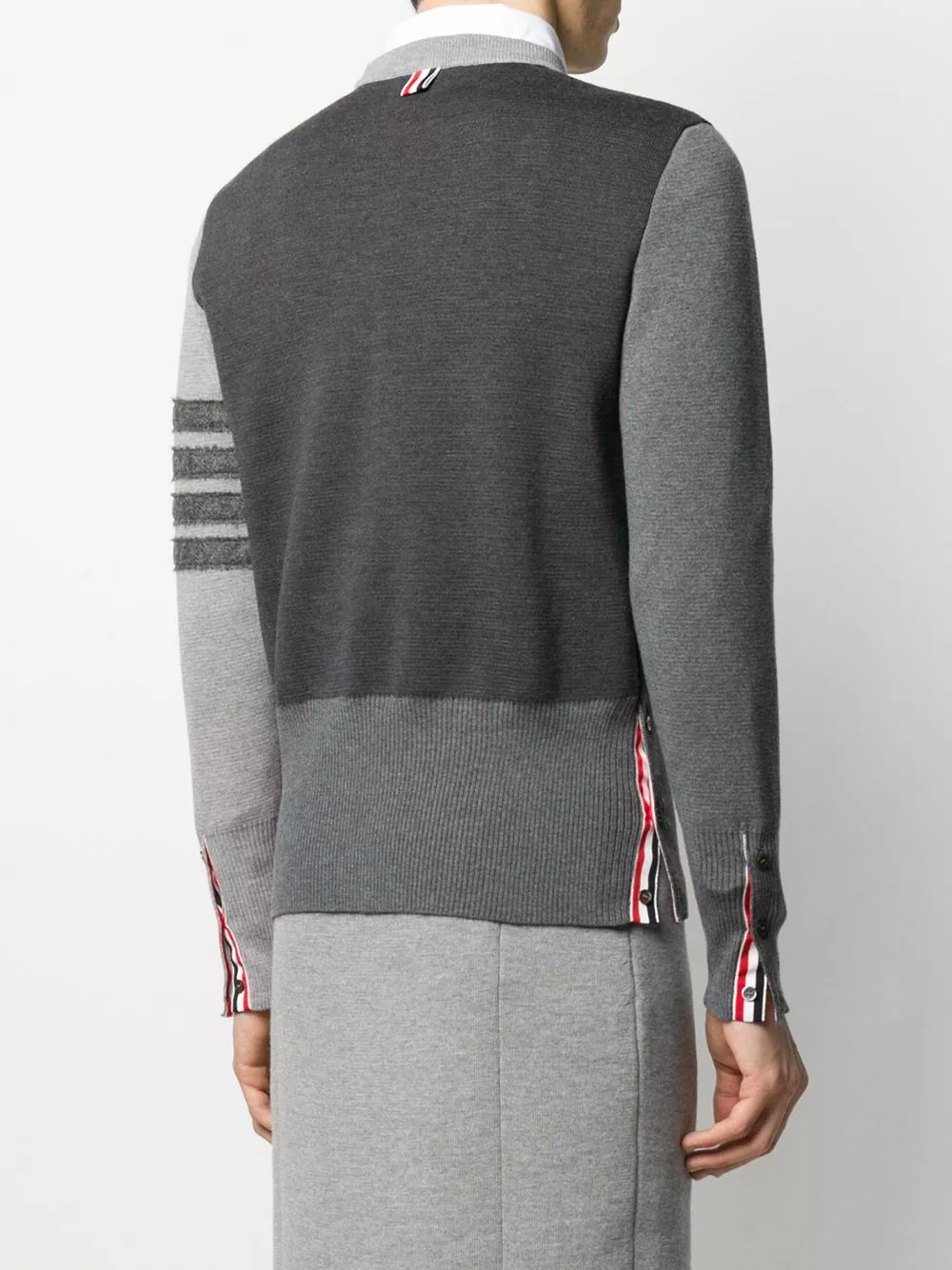 When the weather turns cold, it can be hard to prioritise style over function. But you don’t have to compromise with this 4-Bar Fun Mix Shetland wool jumper from Thom Browne. You’ll stay warm thanks to its fine cashmere panelled design.