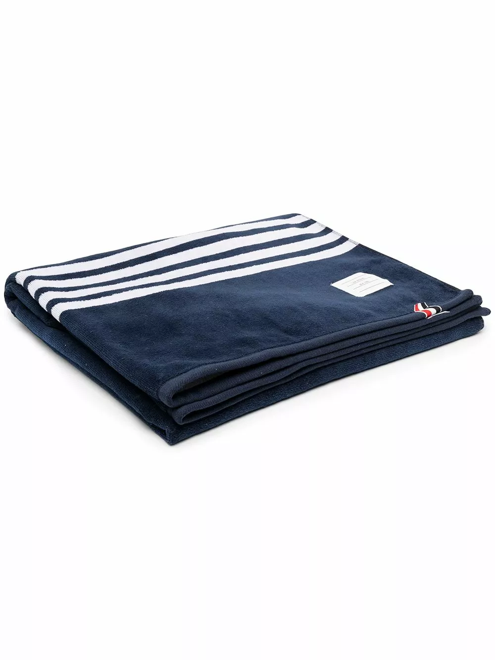 Whether hitting the beach or the pool. This navy cotton towel from Thom Browne will make the perfect companion for any of your aquatic adventures. Finished with their signature 4-Bar stripe running along the edge, you’ll always be covered.