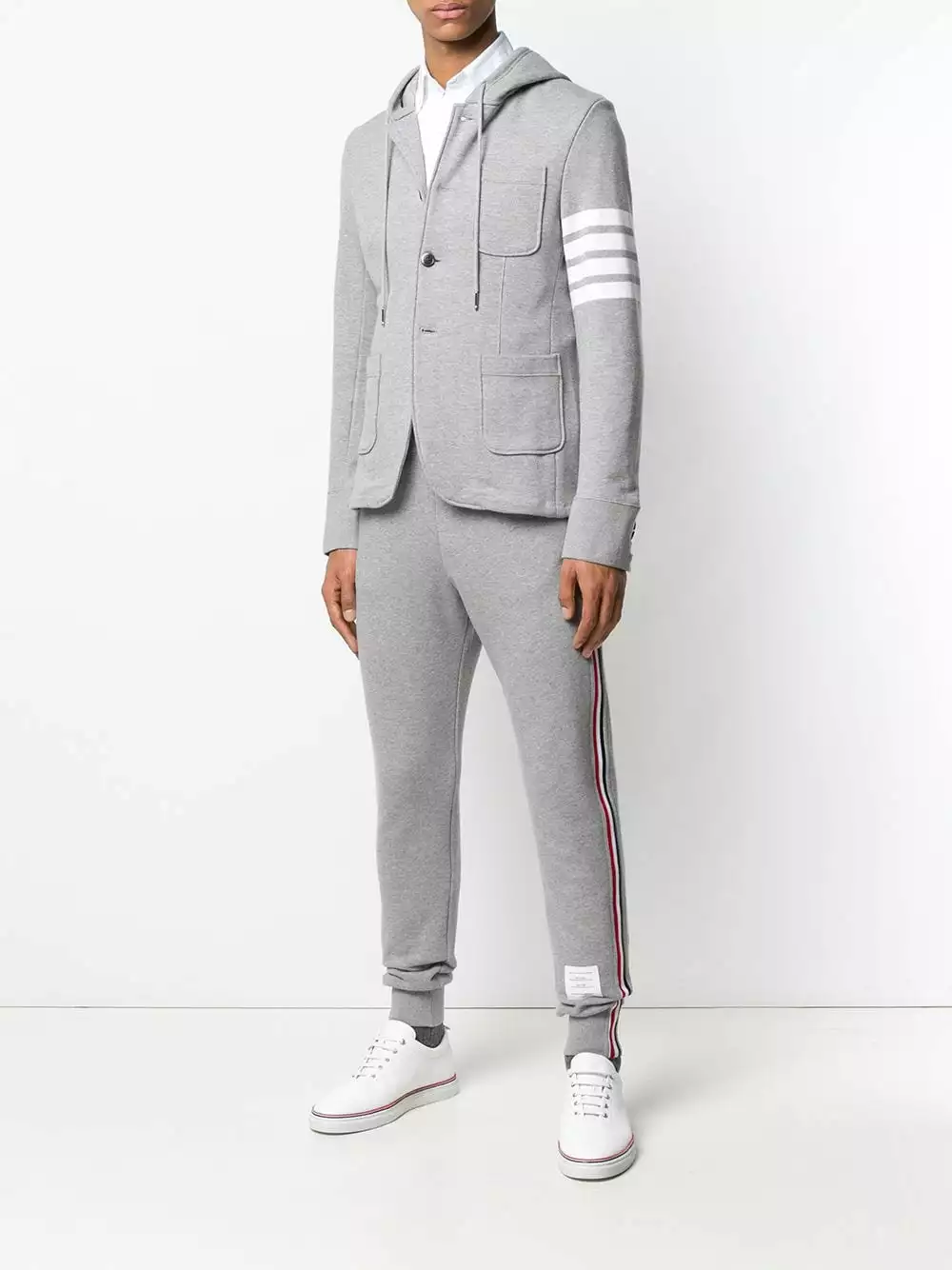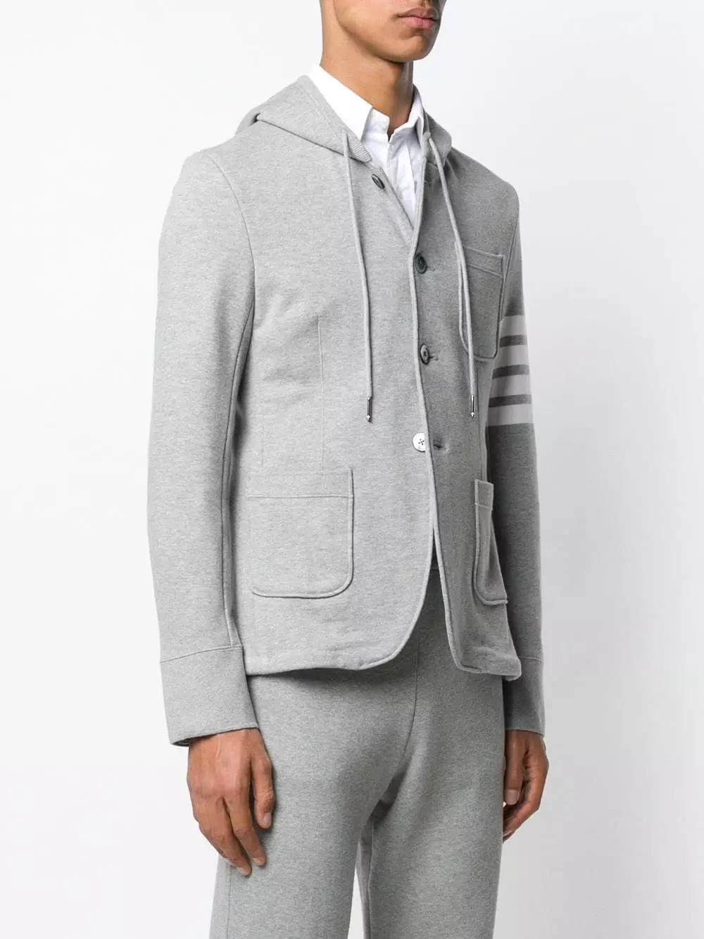 4-bar Loopback Hooded Sport Coat from Thom Browne.