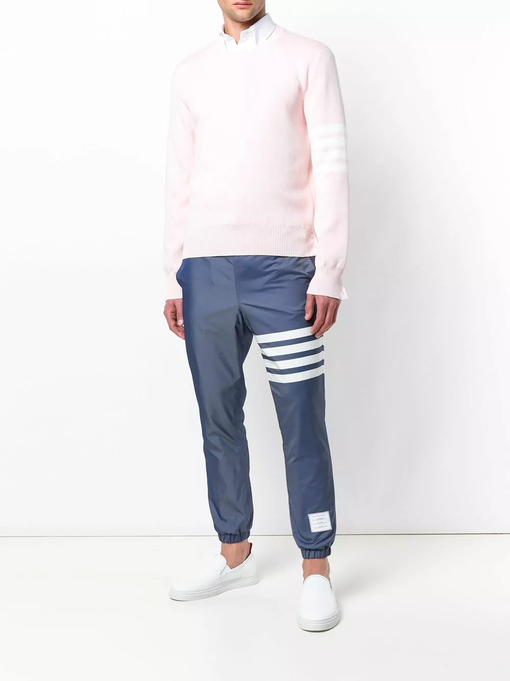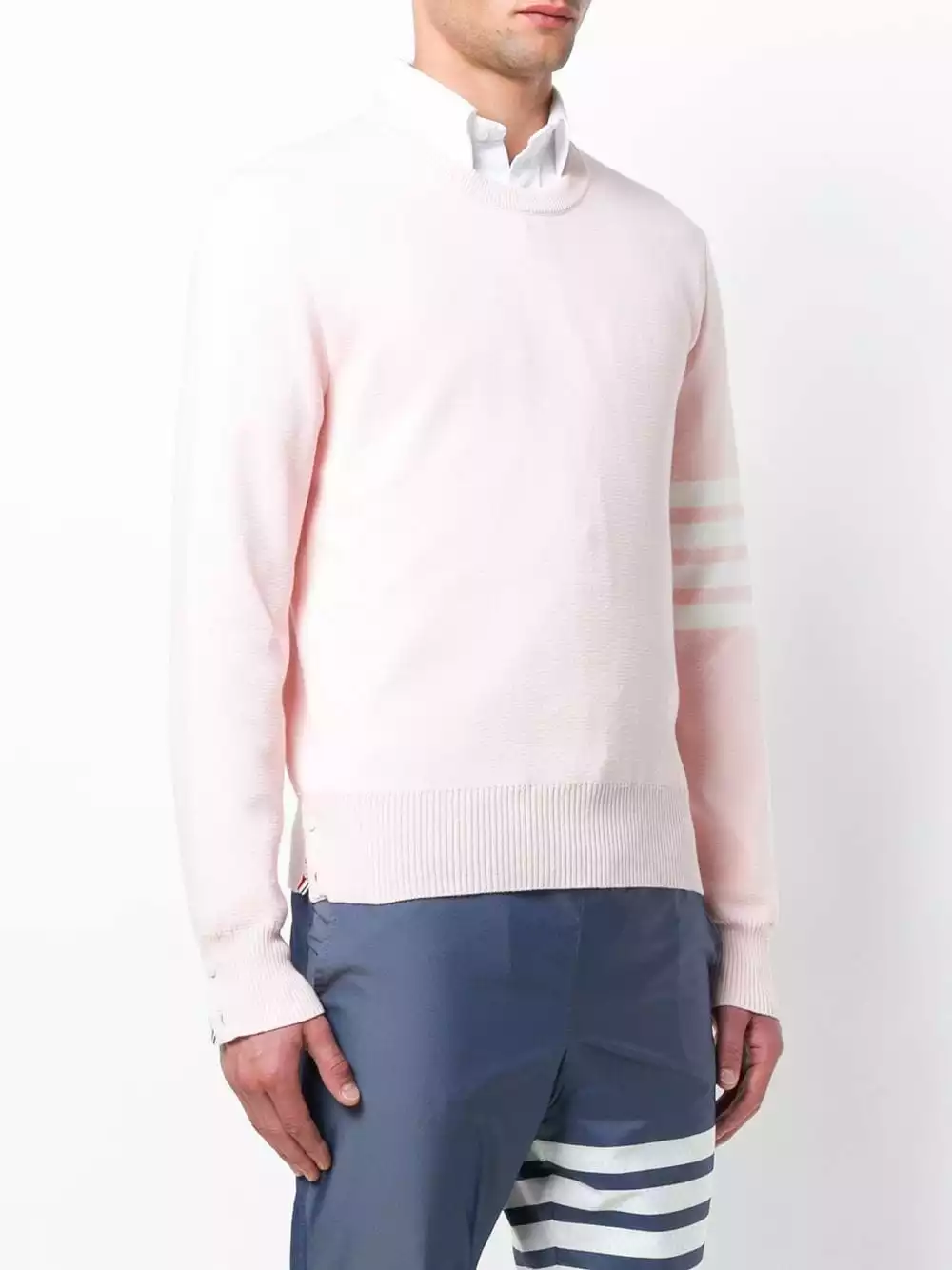 Keep cosy in comfort. You’re covered, with Thom Browne’s 4-Bar detail, long sleeve jumper. You’ve earnt your style stripes with this design.