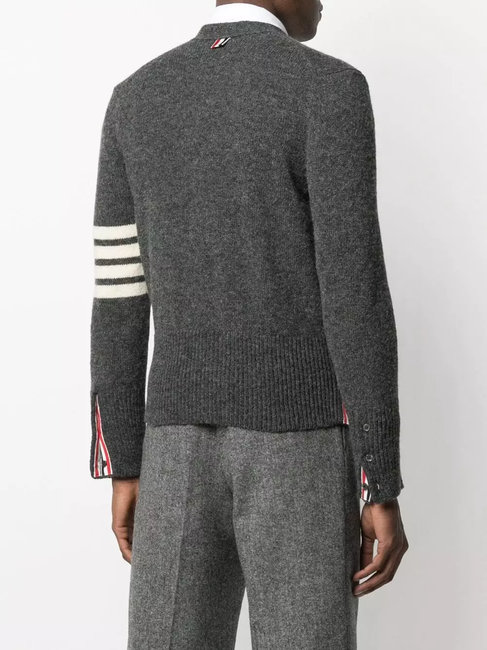 School uniform vibes…but make it fashion. This preppy piece from Thom Browne features the brand’s signature 4-Bar stripe to the sleeve, for maximum impact. A wool cardigan is always a great choice.
