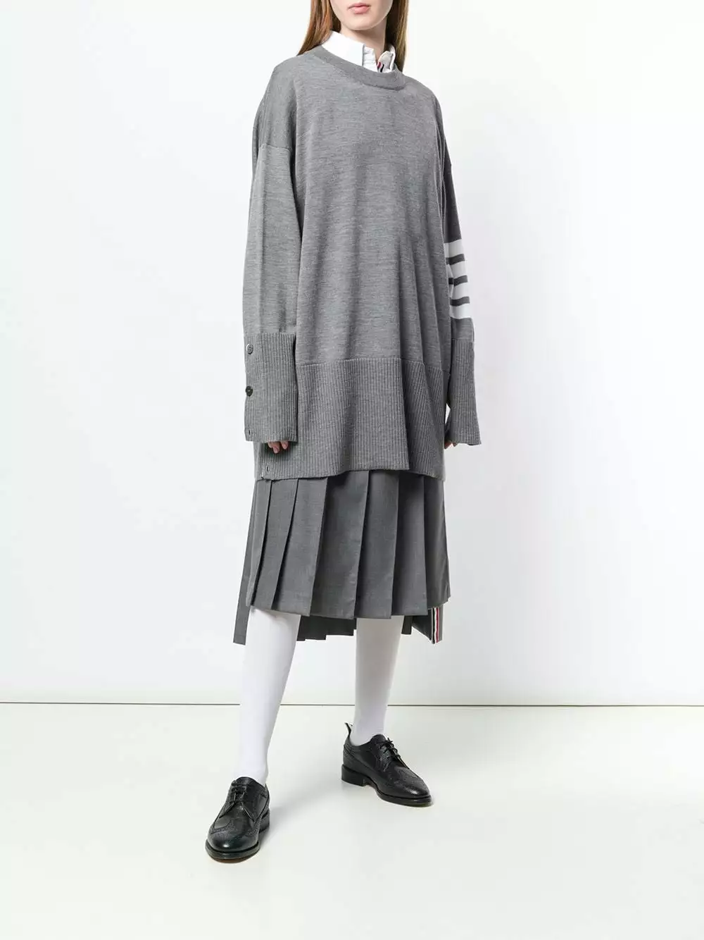 Oversize the jumper and you oversize the impact. Case in point…this 4-Bar stripe piece from Thom Browne. Maximum style.