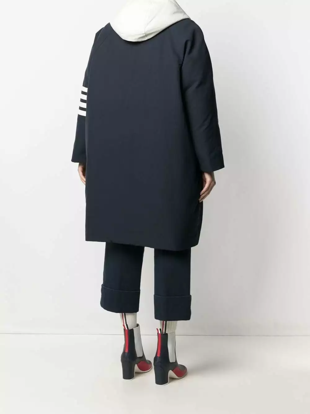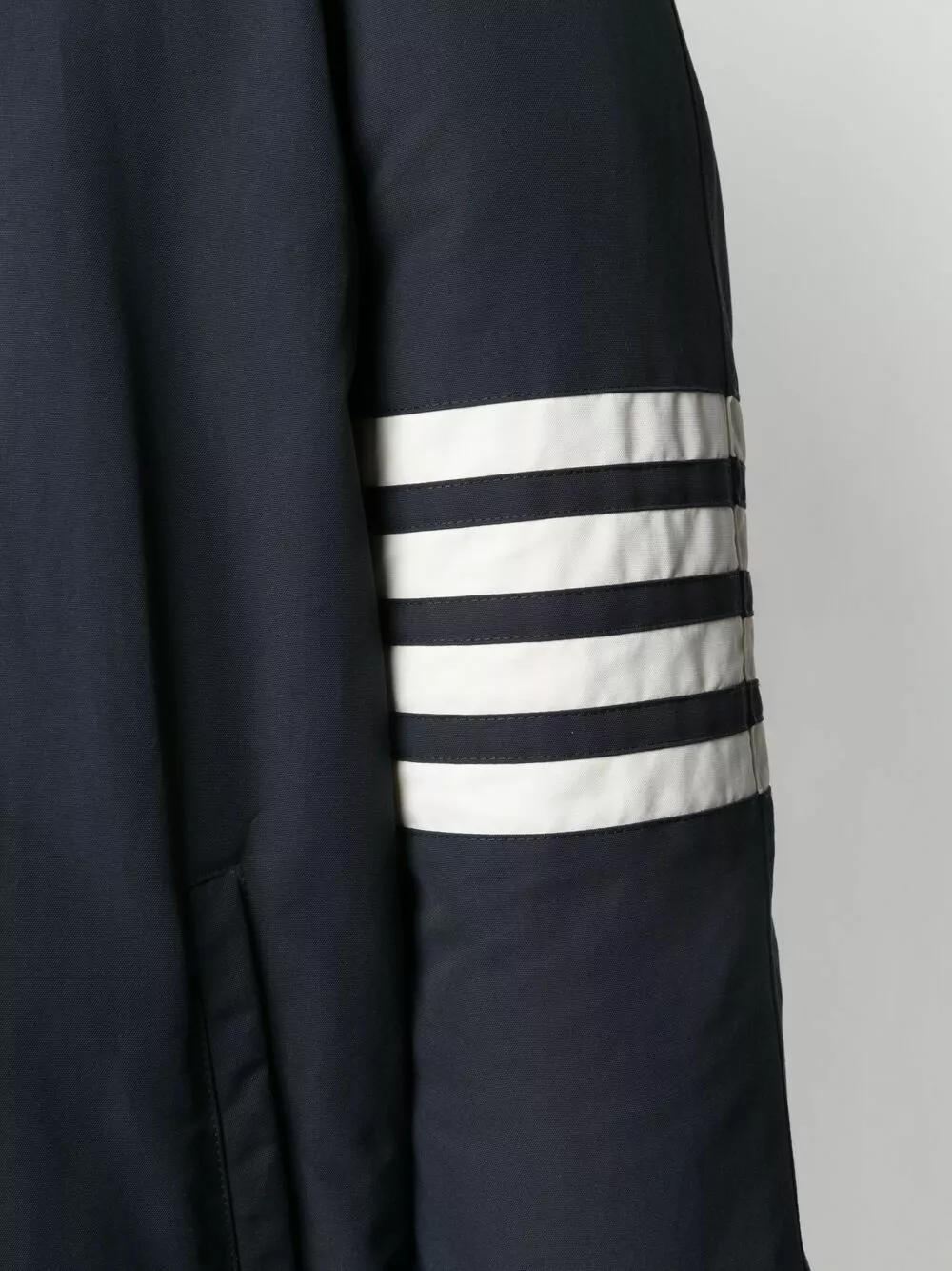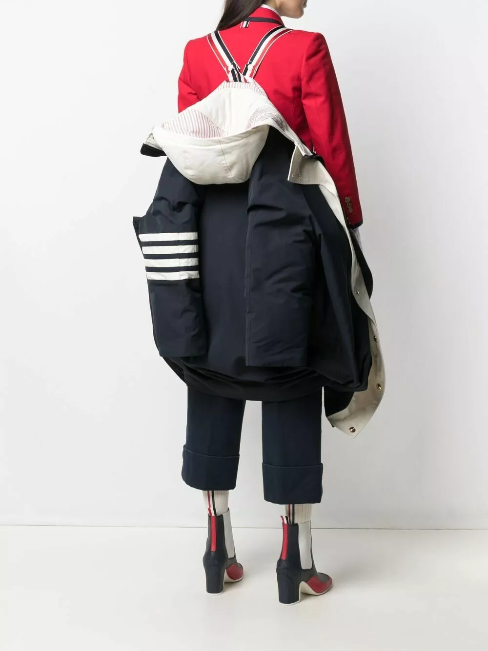 Looking for a steady outerwear option that you can wear for years to come? Thom Browne has just what you’re searching for. In navy and white, this 4-bar padded coat is a versatile pick.