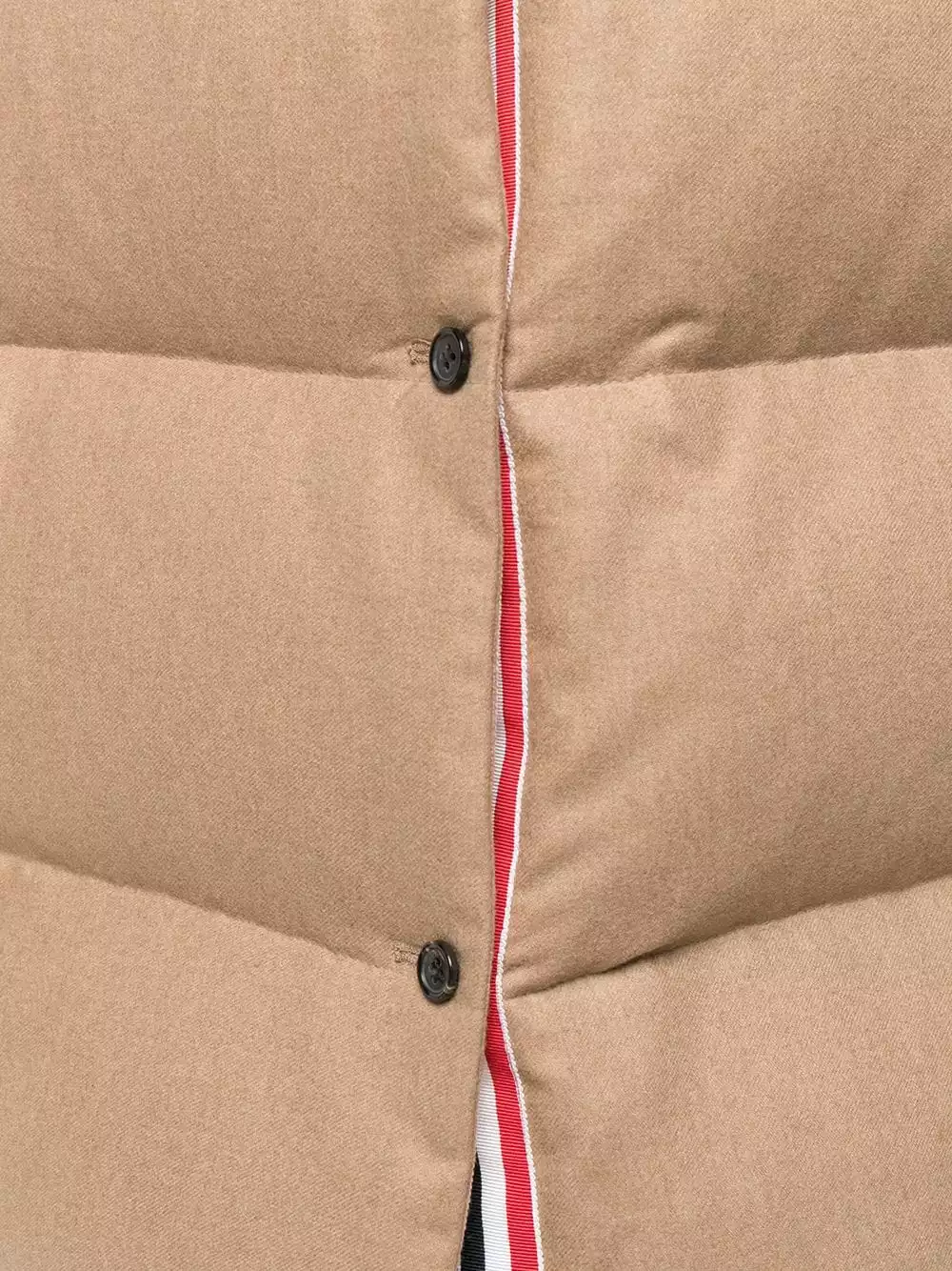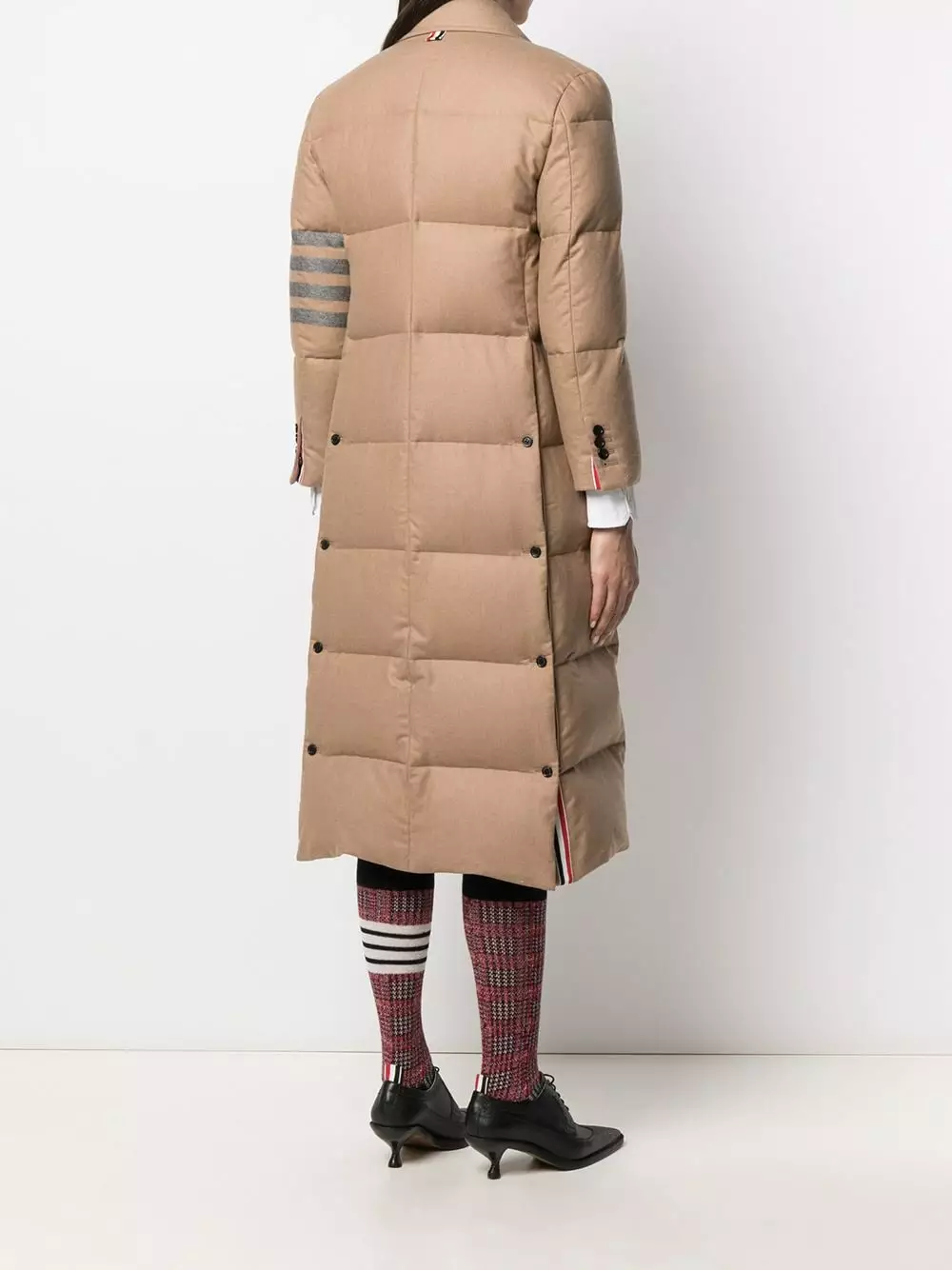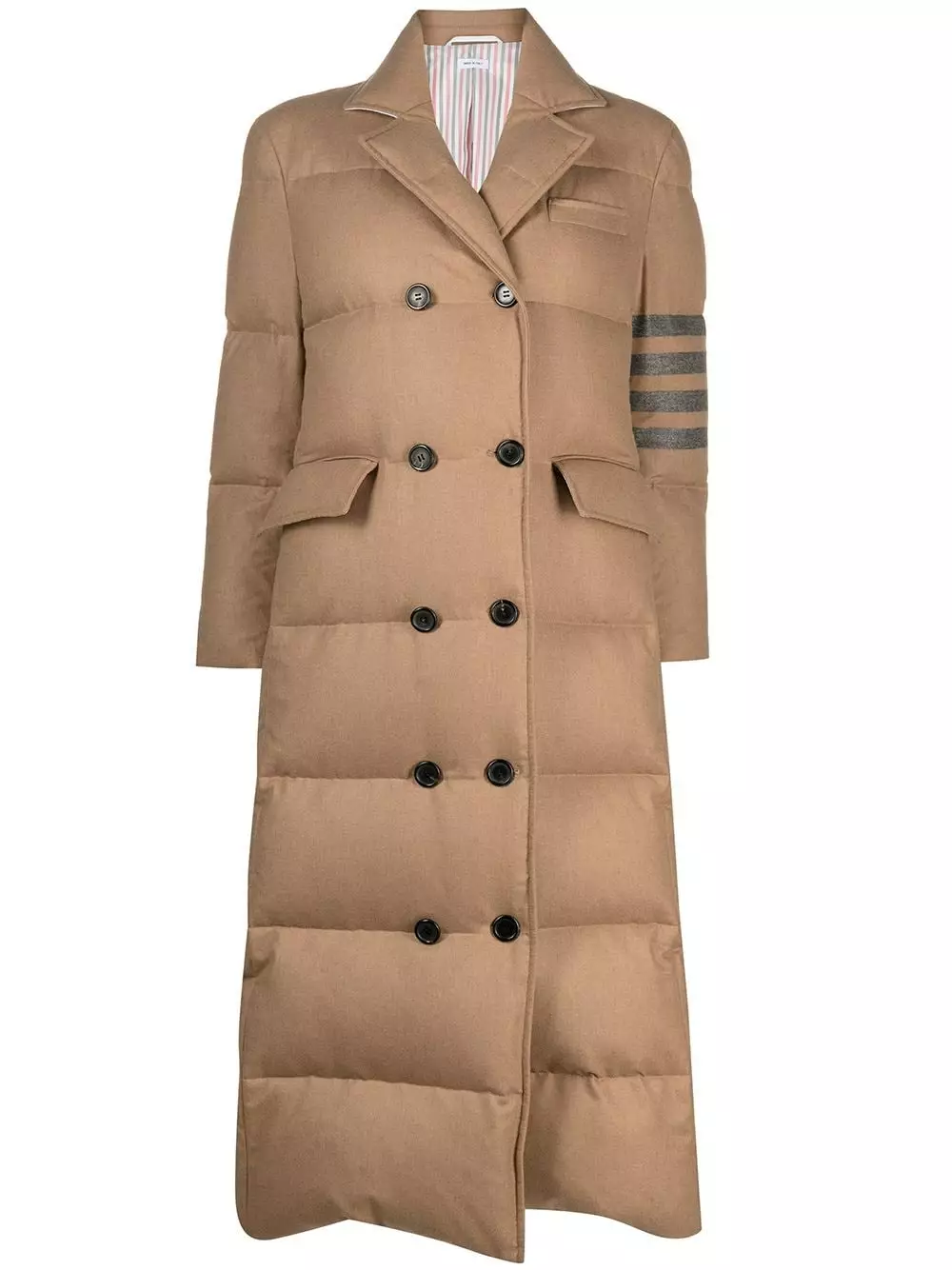 For the modern woman who values elegance. Crafted from camel hair and filled with down, this padded double-breasted coat from Thom Browne features a signature 4-Bar stripe that will be the centrepiece of your tailored outfit. Refinement at its best.