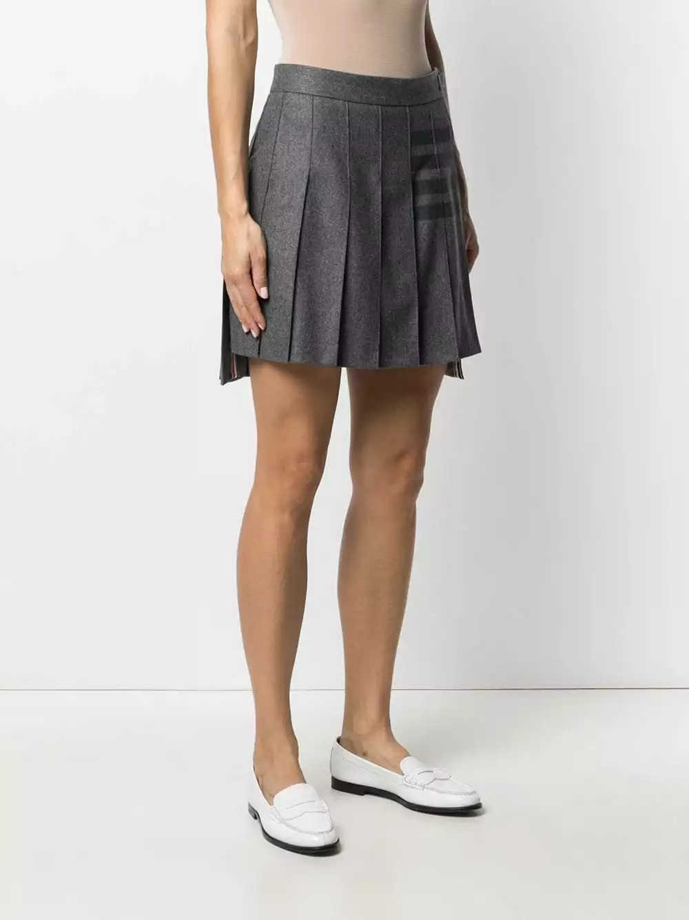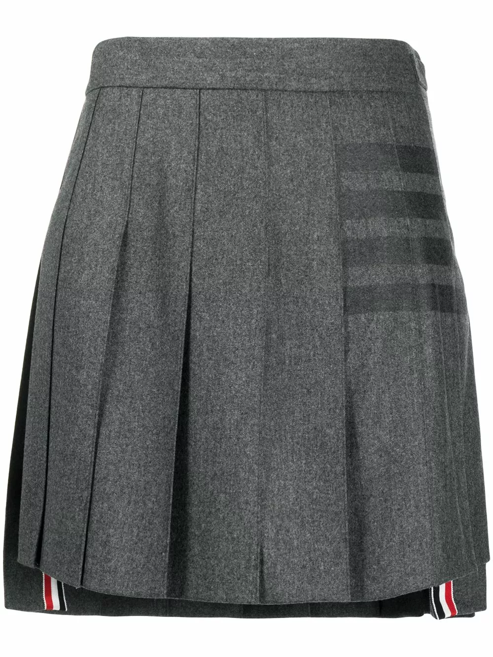Pleats, please. With a signature 4-Bar print to one side, this pleated skirt from Thom Browne is here to take your preppy aesthetic to the next level. Lucky you. Featuring a high waist, a pleated design, a short length, 4-Bar motif to one side and a step hem.