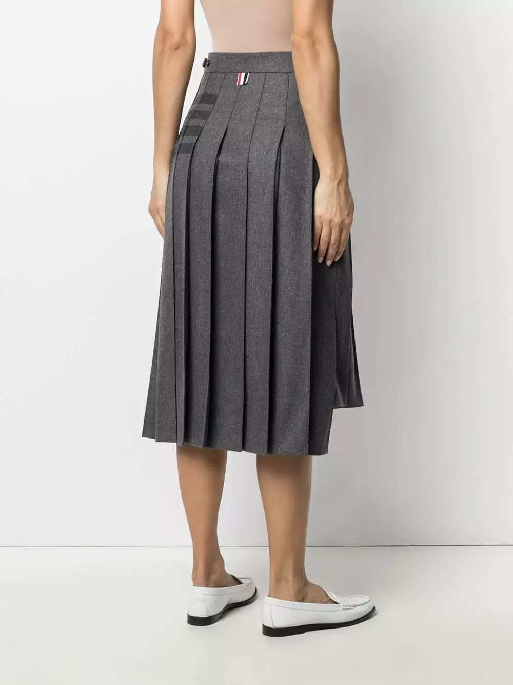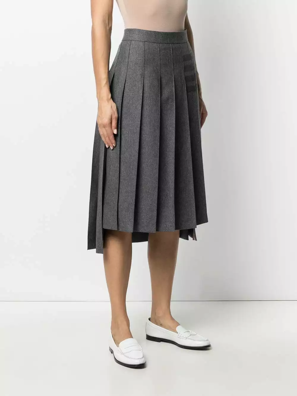 Pleats, please. Take your preppy aesthetic to the next level with this 4-Bar pleated flannel skirt from Thom Browne. Lucky you. Featuring a high waist, a pleated design, a knee-length, a 4-Bar motif to one side and a stepped hem.