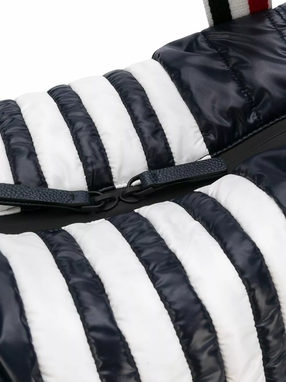 Hit the gym in style was never so easy. This 4-bar quilted ripstop gym bag from Thom Browne has everything you need, space and coolness. No more excuses to skip that spinning class.