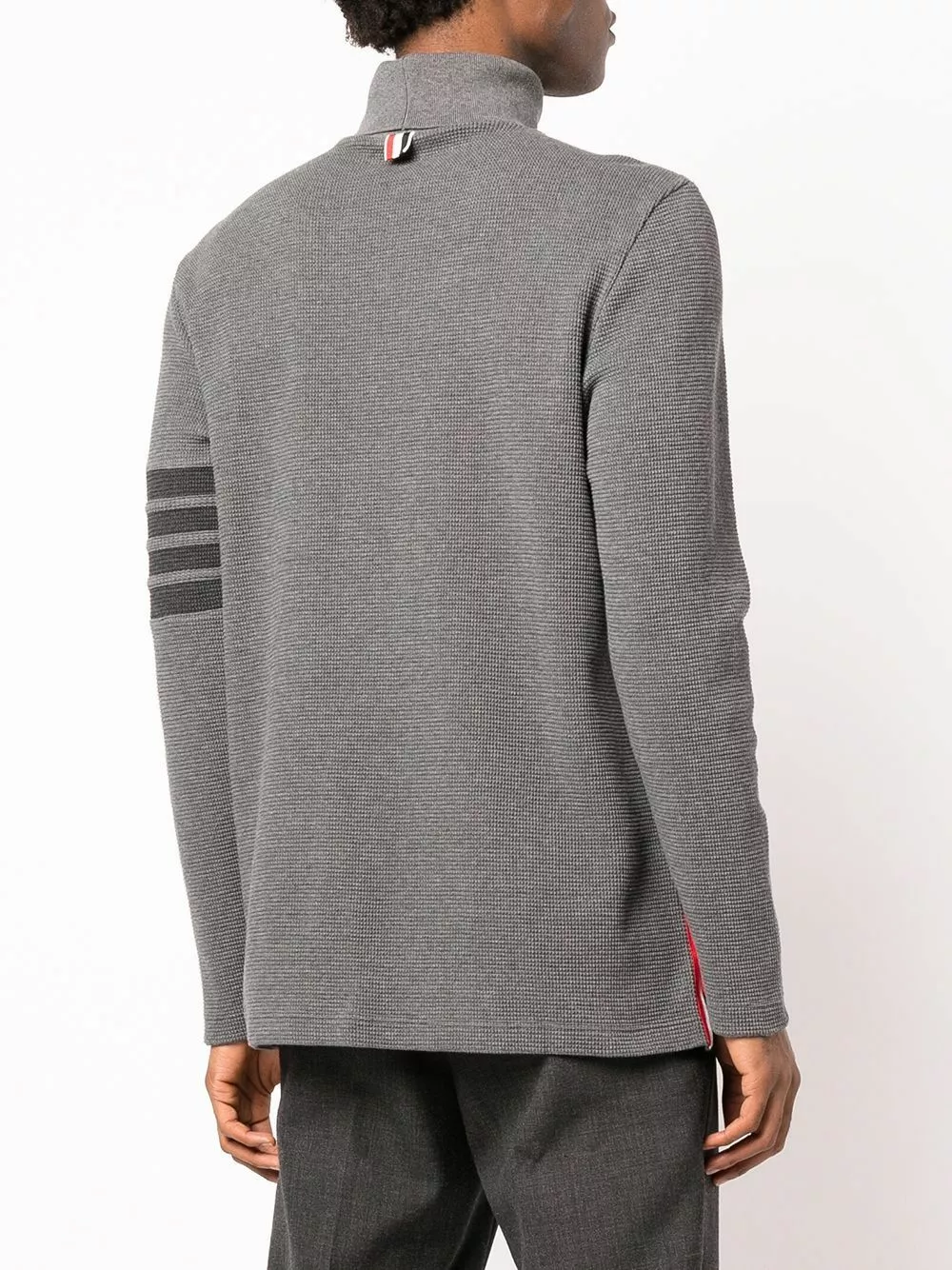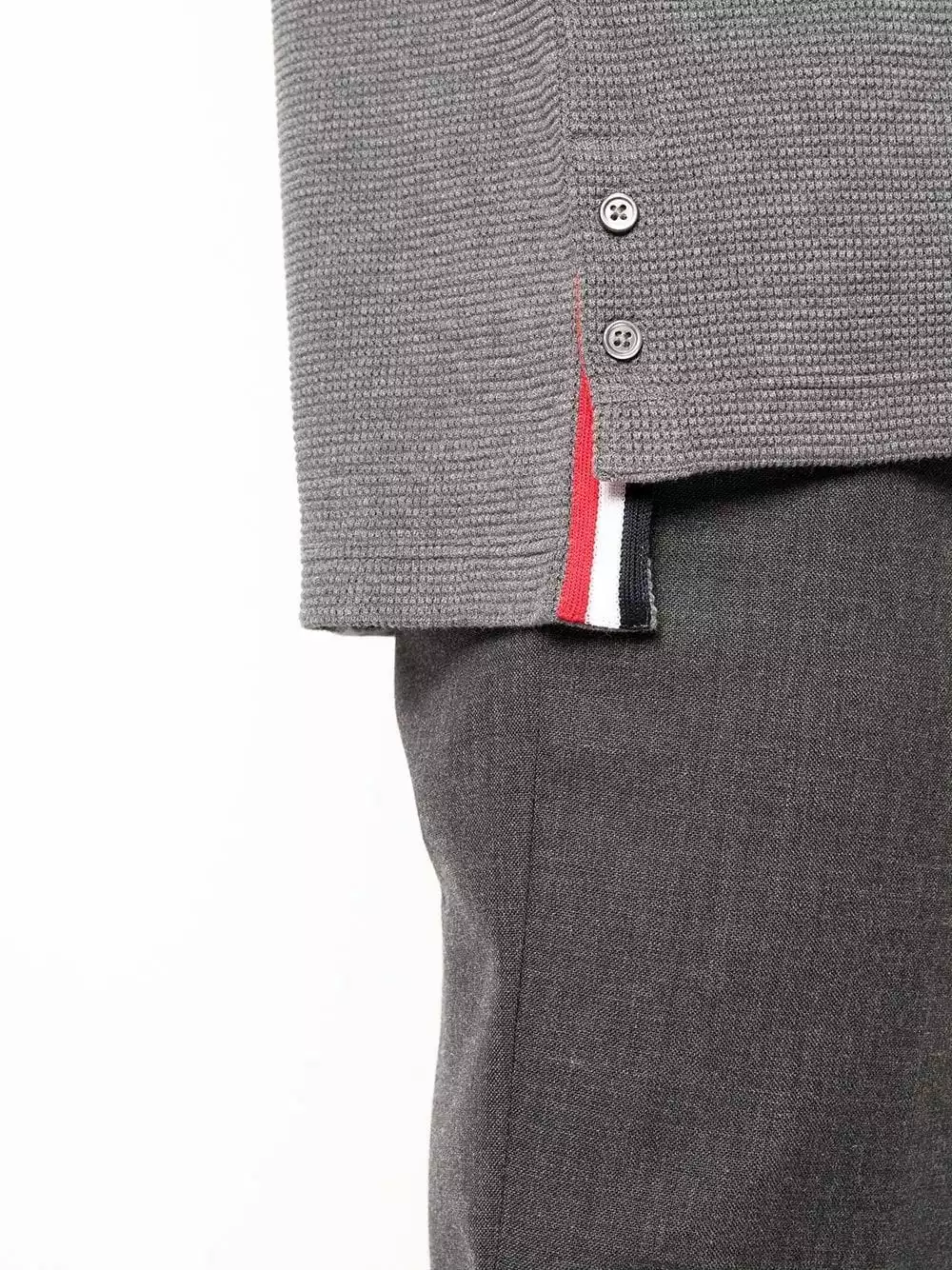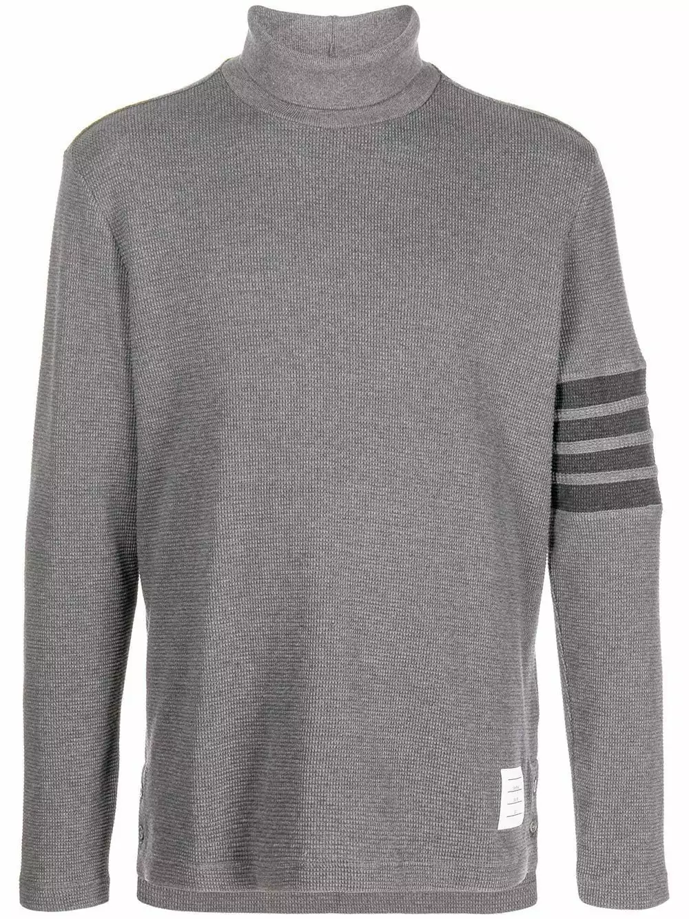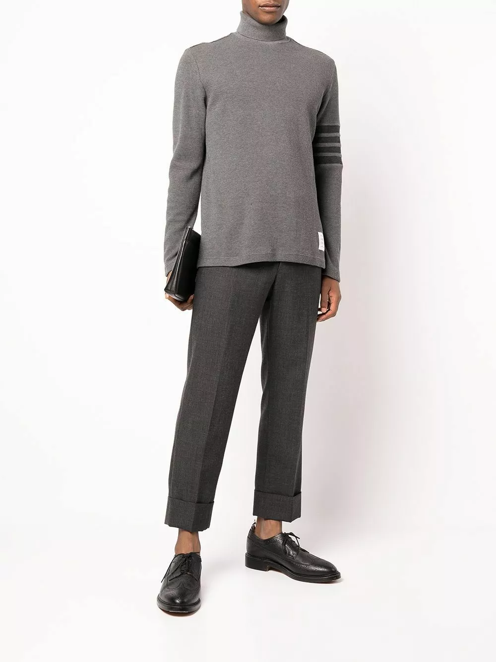A tonal grey design allows for a more understated appearance of the 4-Bar stripe at the sleeve of this Thom Browne jumper. This is combined with the signature red, white and blue stripes for an instantly recognisable touch.