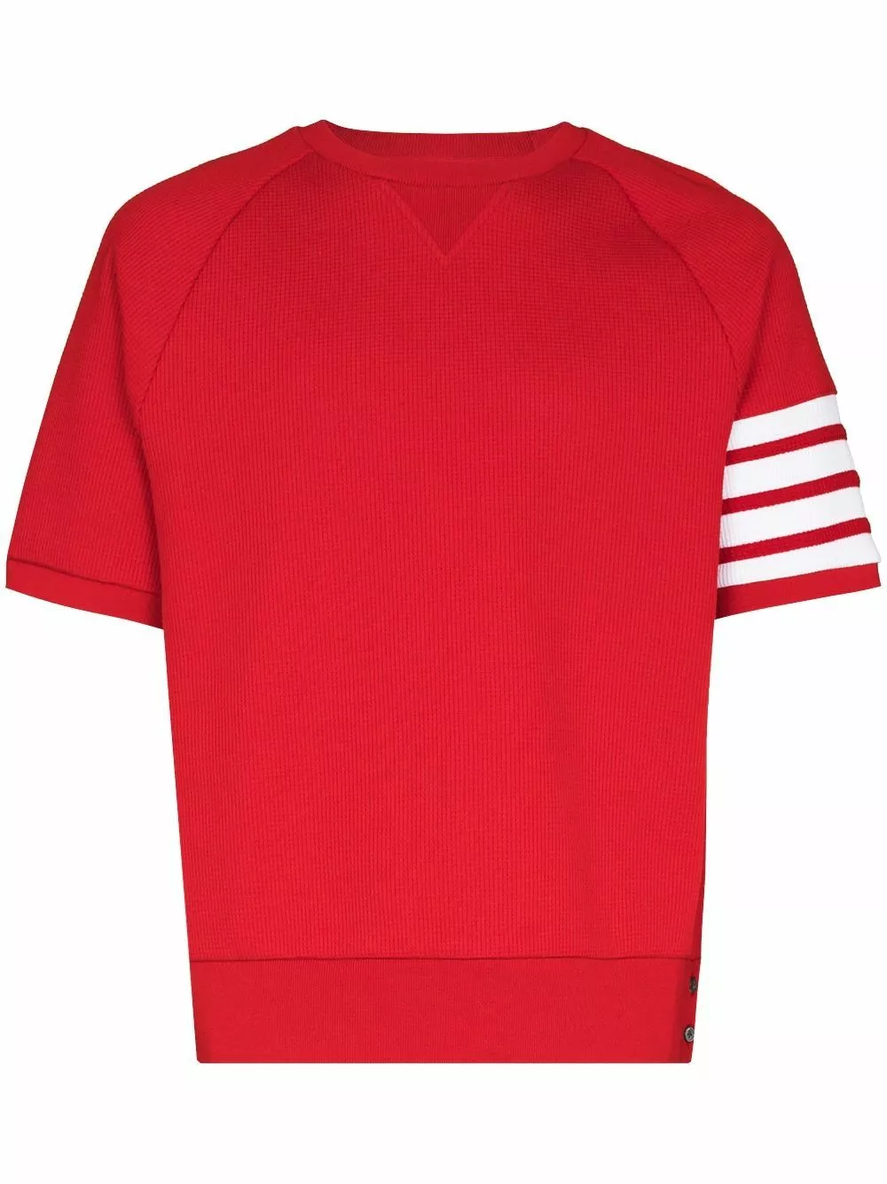 A classic, with a Thom Browne twist. Crafted from cotton, in a red tone, this short-sleeve T-shirt is detailed with the iconic 4-Bar stripe on the sleeve.