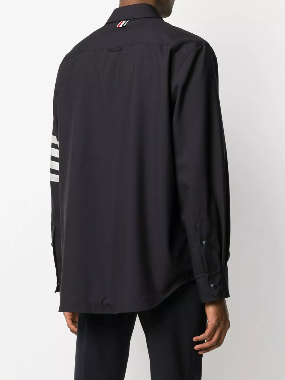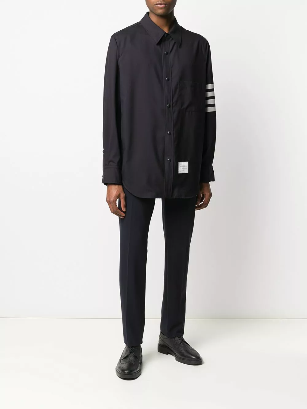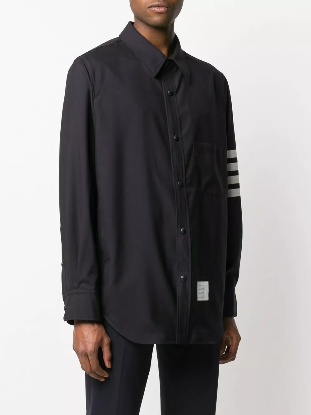 Were you asked to throw some bars? Only if that means the 4-Bar stripe detail on this shirt’s sleeve. Rap with Thom Browne.