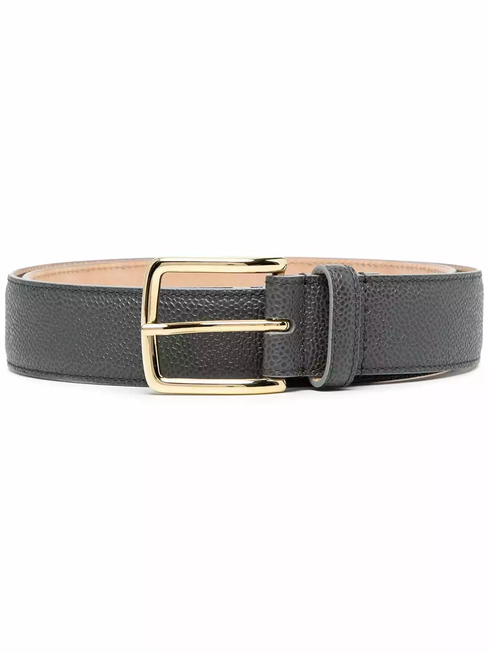 Crafted from dark-grey leather, this Thom Browne belt offers a refined look which is enhanced by the 4-Bar stripe – a detail found throughout the brand’s collections.
