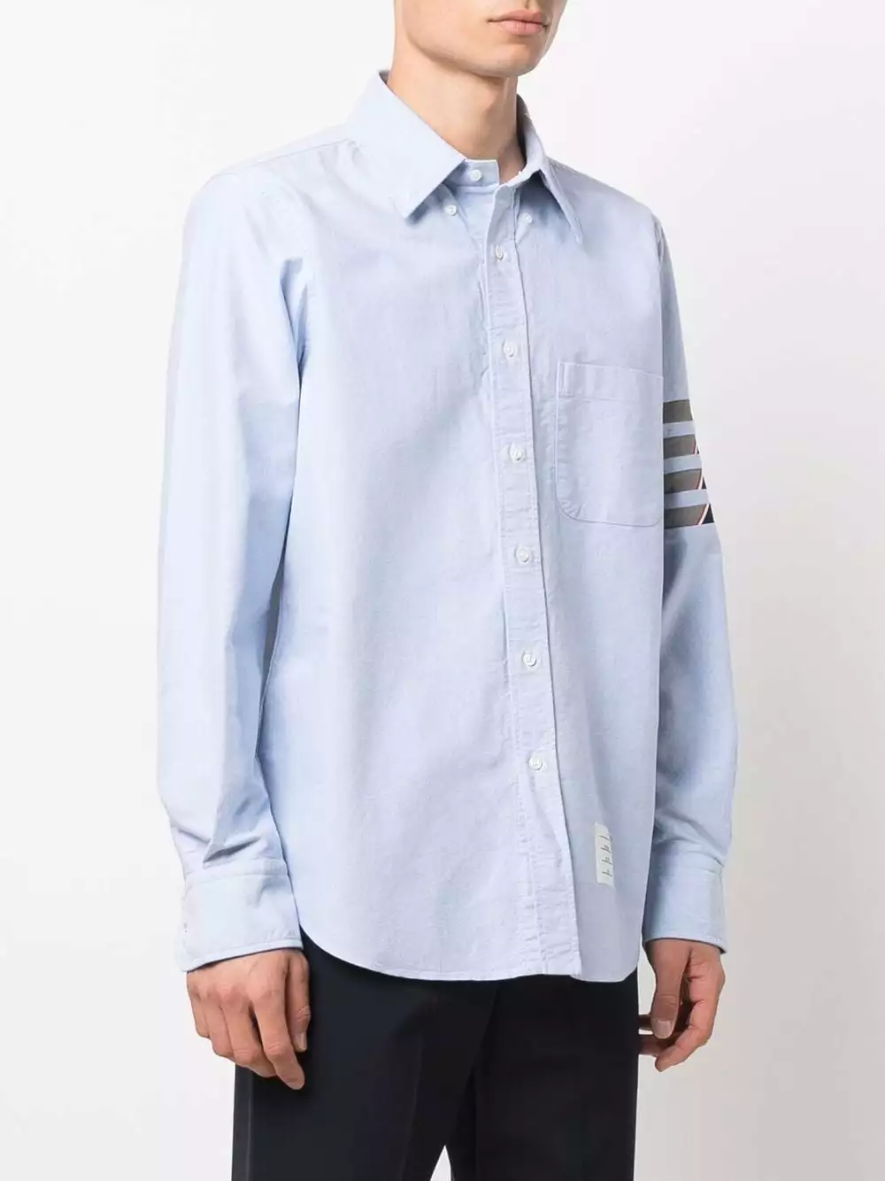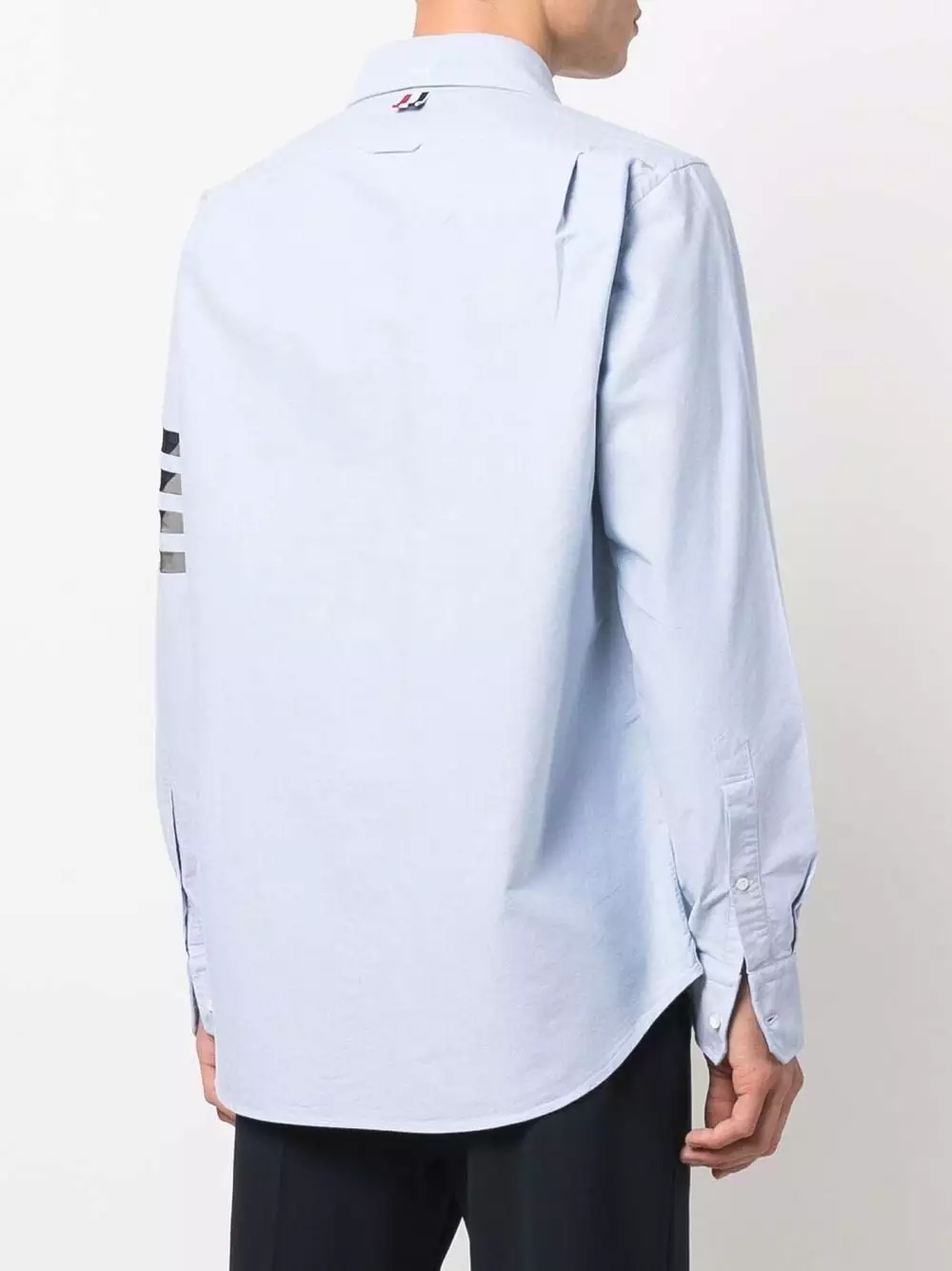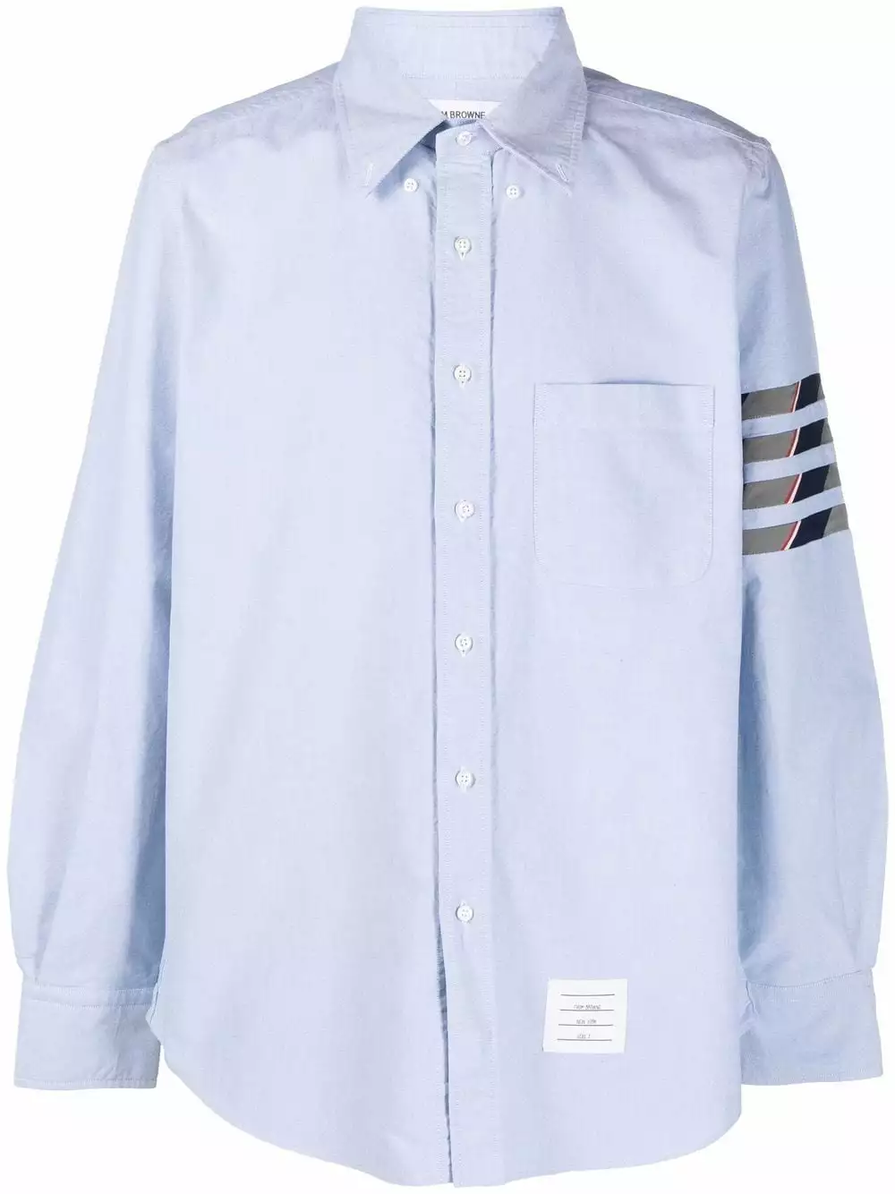 Thom Browne presents this house staple piece for its AW21 collection. Its expert craftsmanship in tailored items is seen on this button-down shirt, crafted from breathable cotton. In a light blue hue, they have the brand’s iconic 4-Bar stripe on the sleeve.