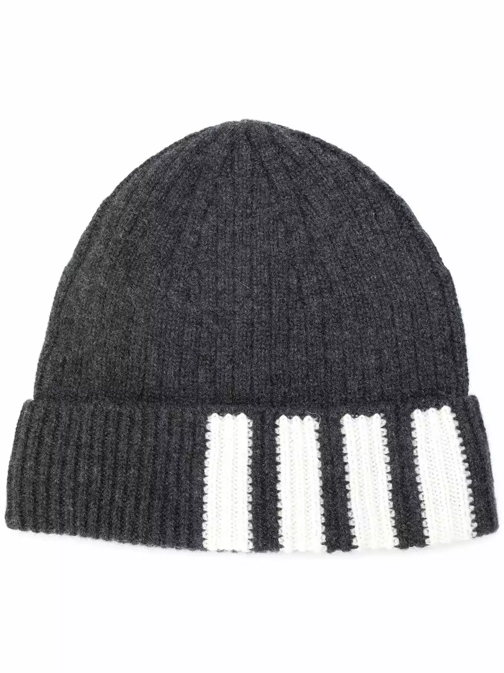 Dark grey cashmere 4-Bar Stripe Cashmere Rib Hat from Thom Browne.