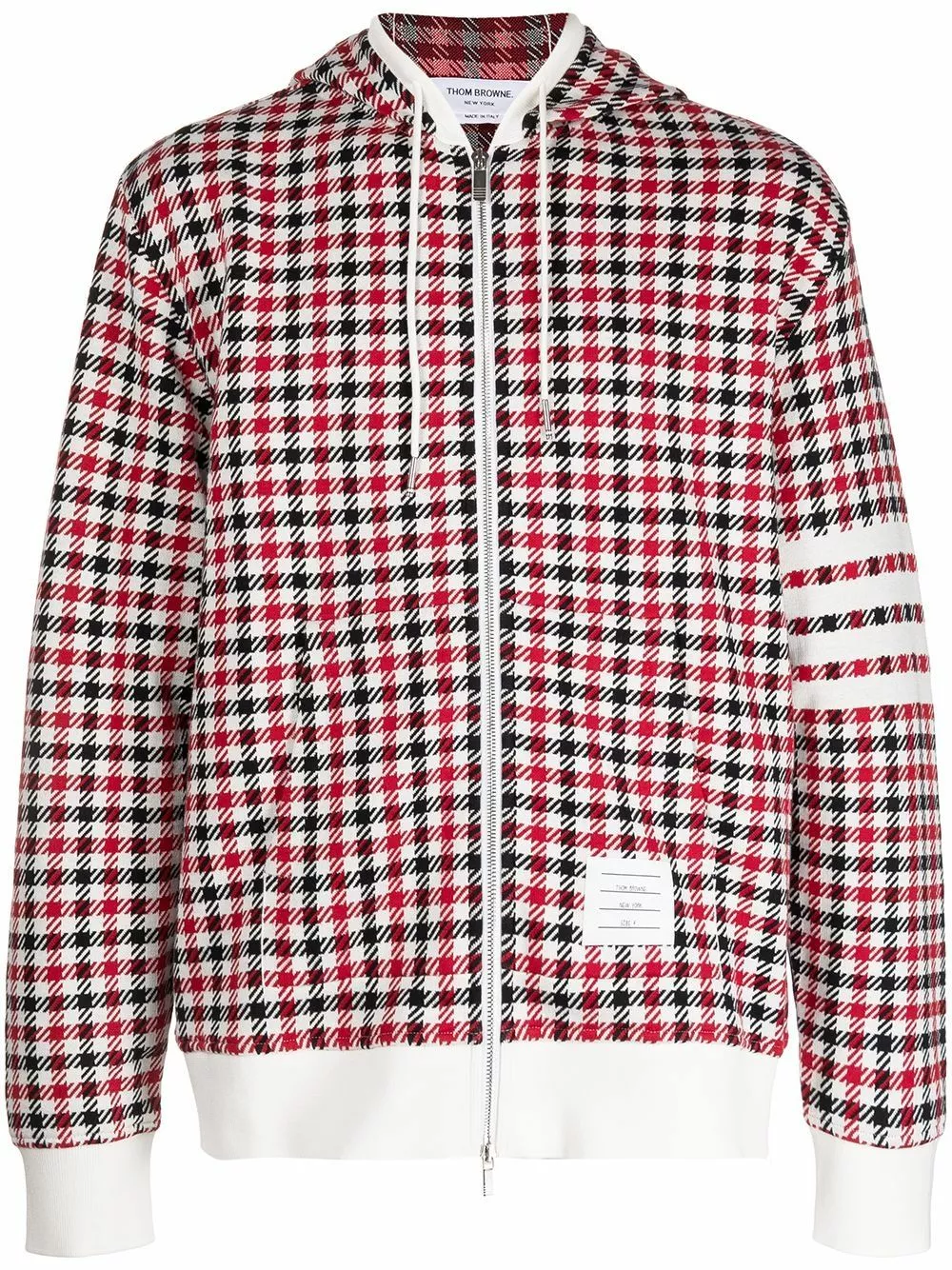 In red, white and blue tones, this hoodie boasts signature Thom Browne detailing. An all-over check pattern is paired with a 4-Bar stripe to the sleeve for a signature finish.