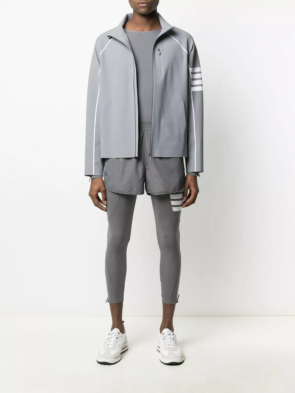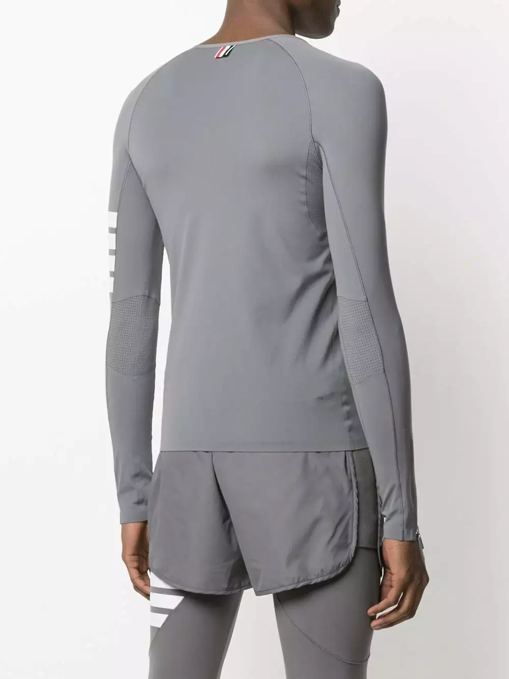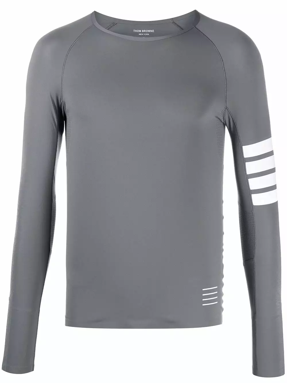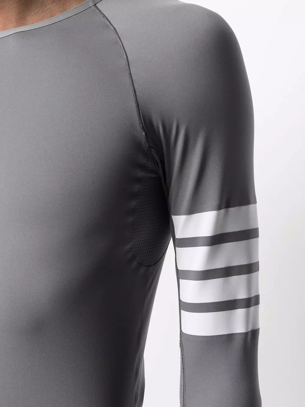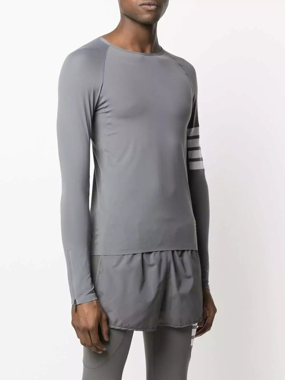 Are you a runner? Well, whether you’re running kilometres or just to get your morning coffee, you’re going to want to do it in this lightweight long-sleeved performance top by Thom Browne. Break a sweat.