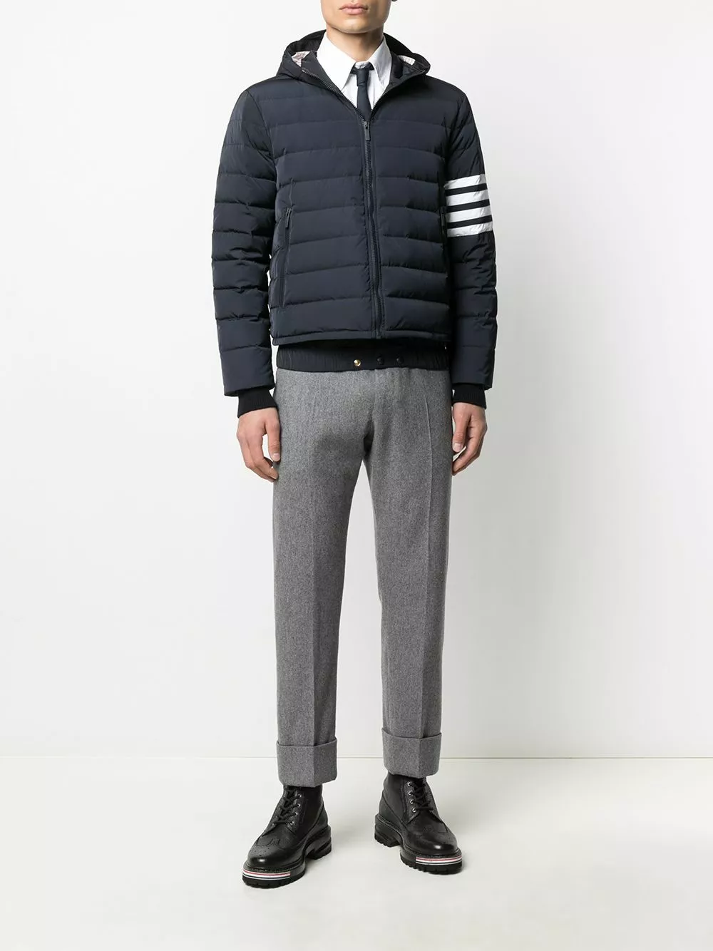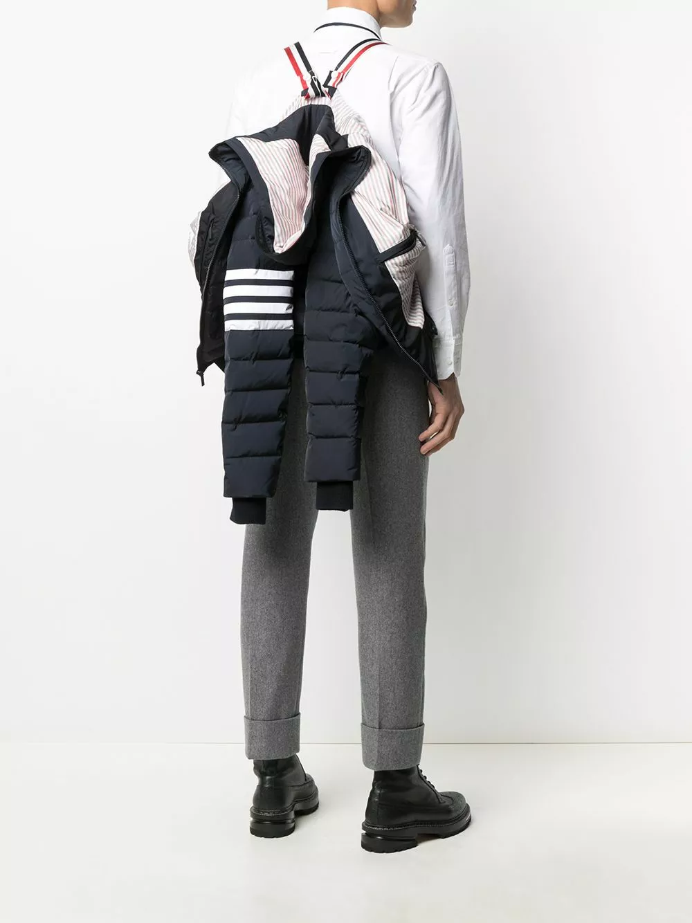 Wipe that smug smile off your face. Just because you won’t feel the cold in this cosy goose down jacket by Thom Browne, doesn’t mean youshould brag about it. Imagine how your cold friends might feel…