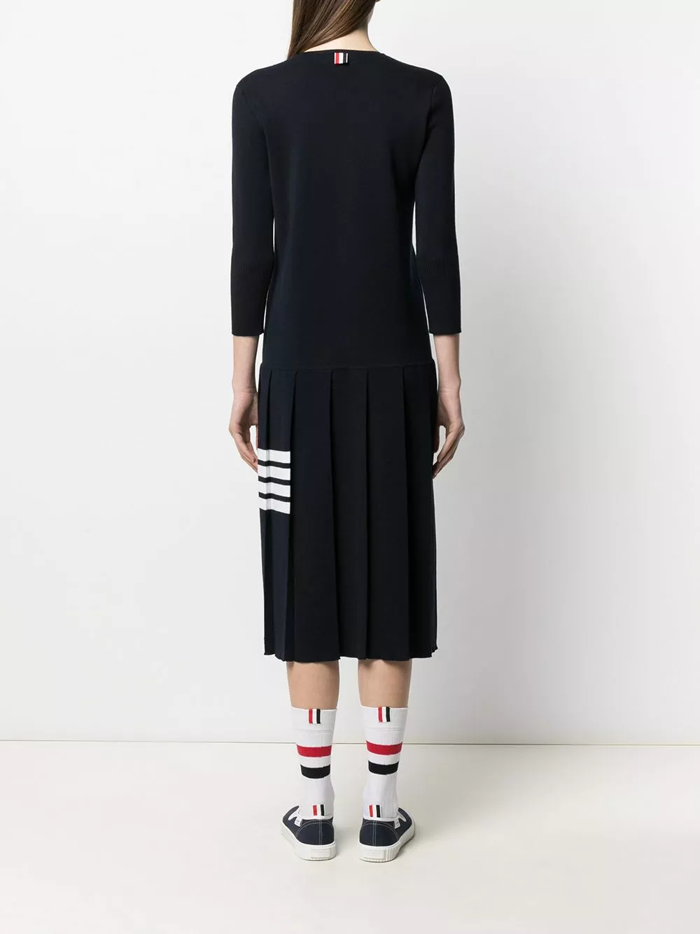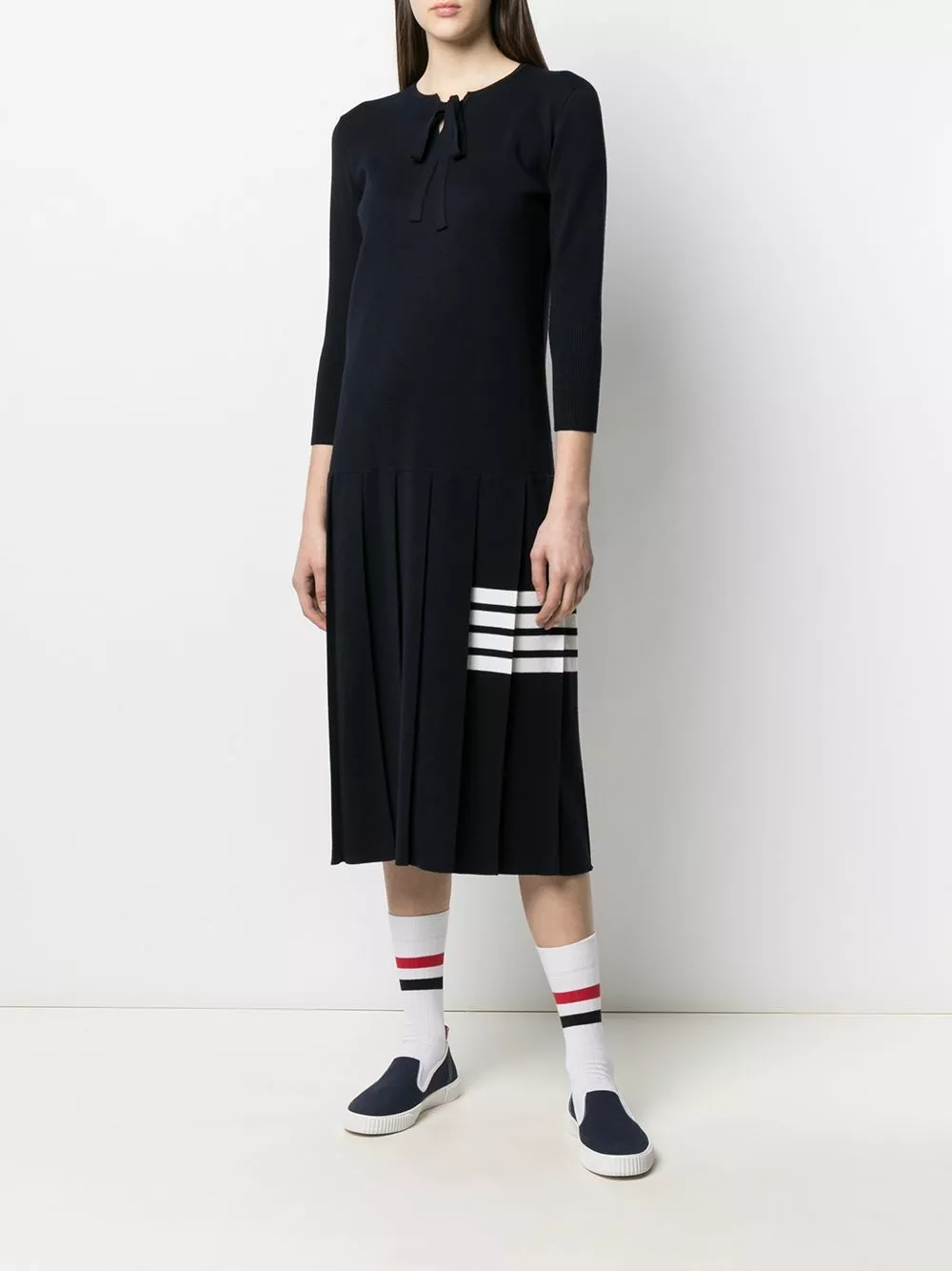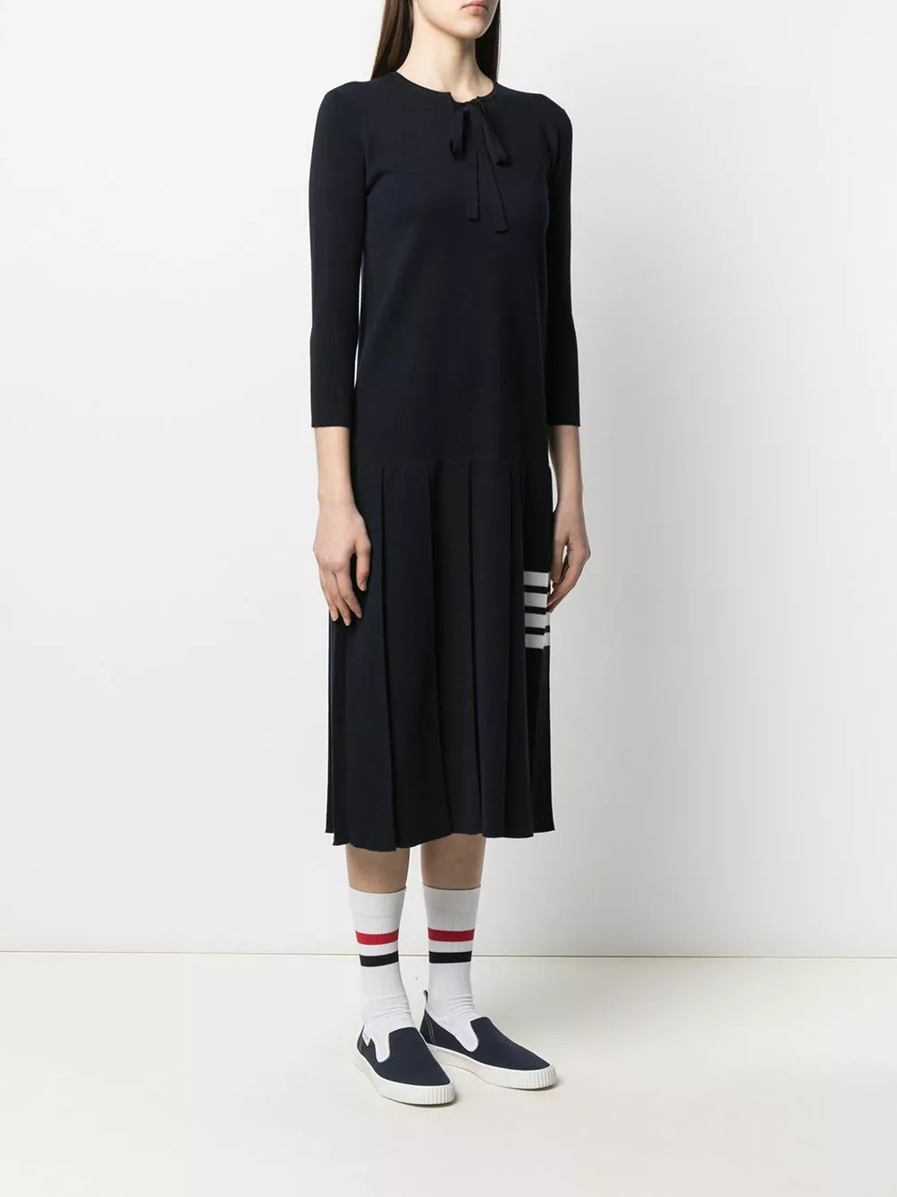 Forget old tracksuits and bed socks. Thom Browne is certain your winter style must not make any compromises this year with this cosy merino wool knitted dress. Finally.
