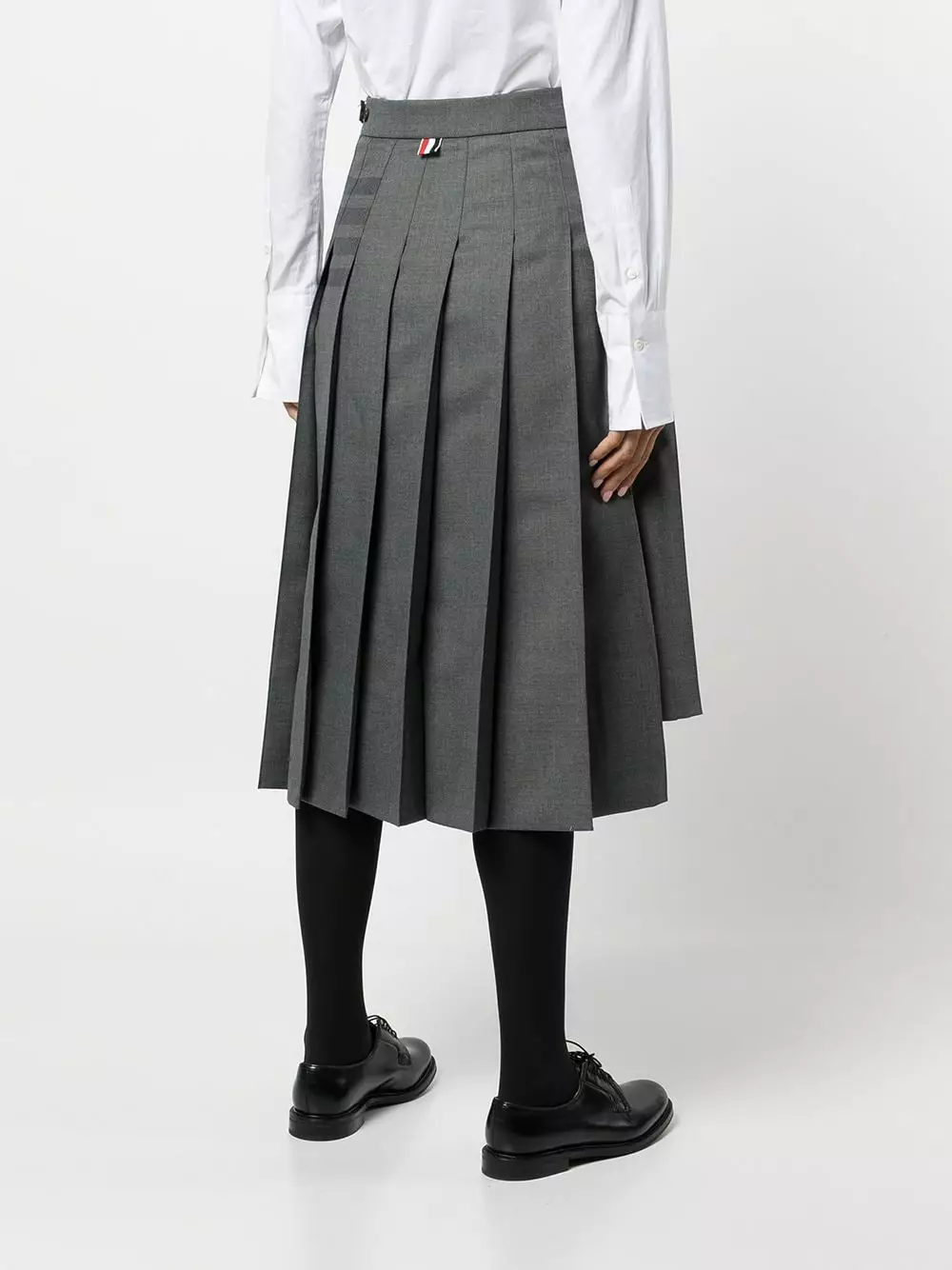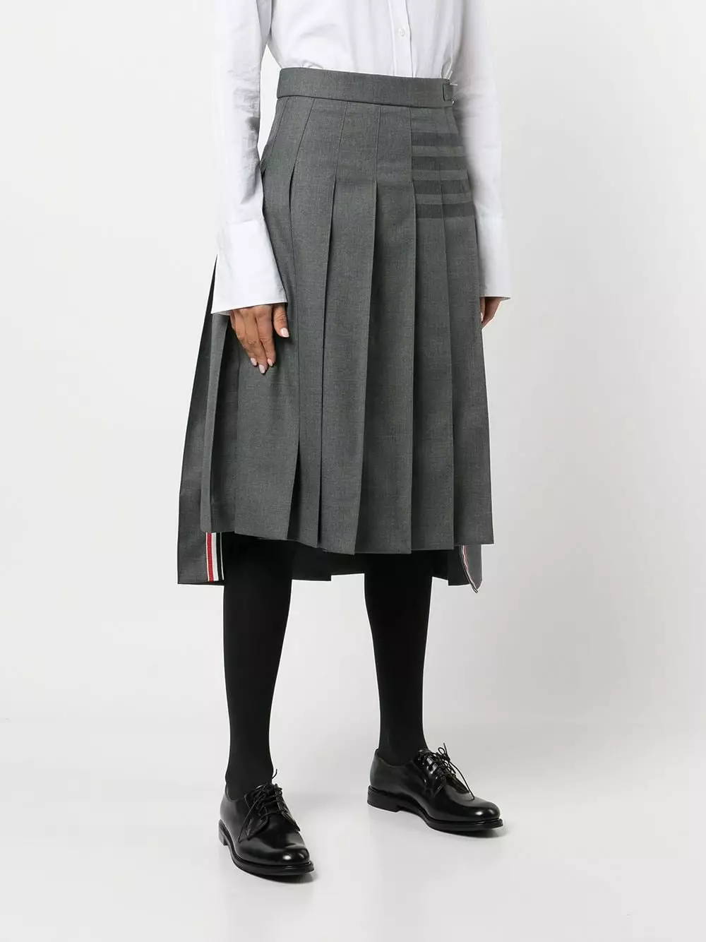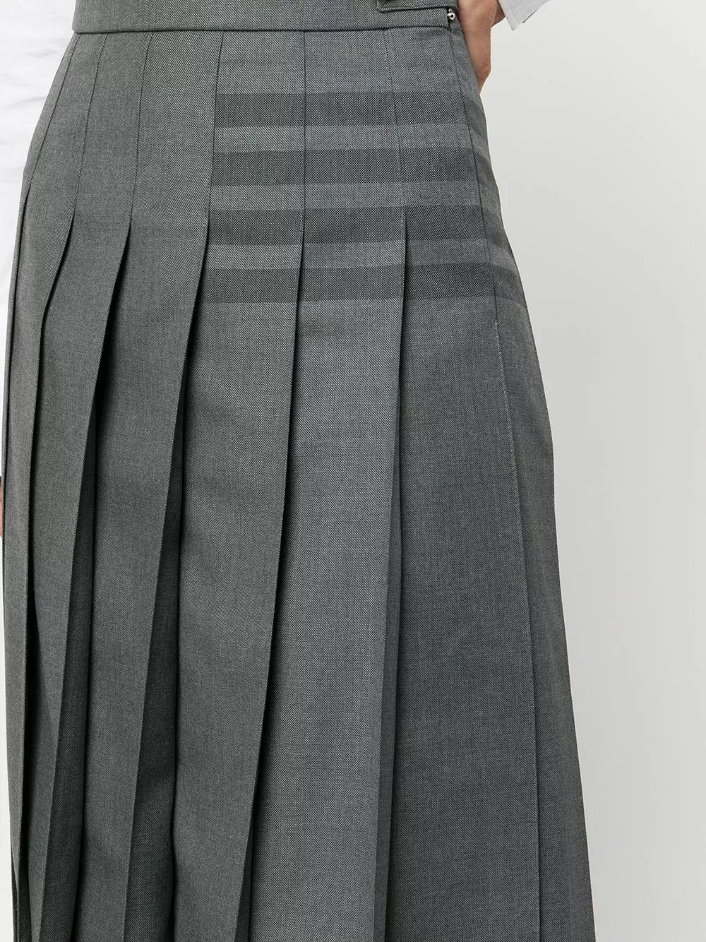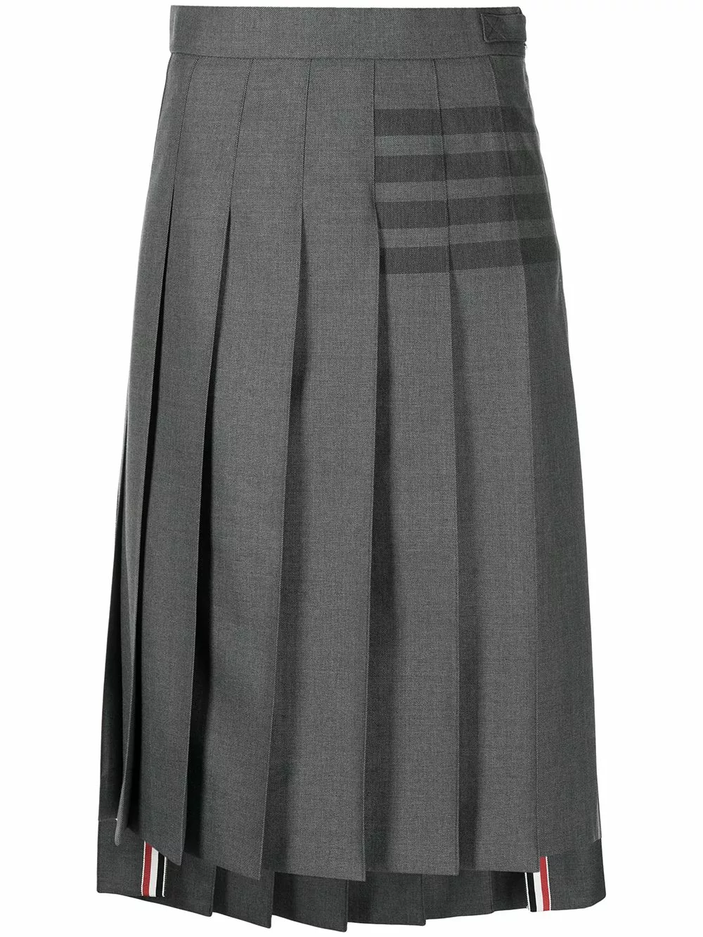 Red, white and blue tones are key colours within Thom Browne’s collections, appearing on multiple pieces in their signature striped design. This detailing appears at the rear and hem of this piece, adding a bold touch to the understated grey colourway.
