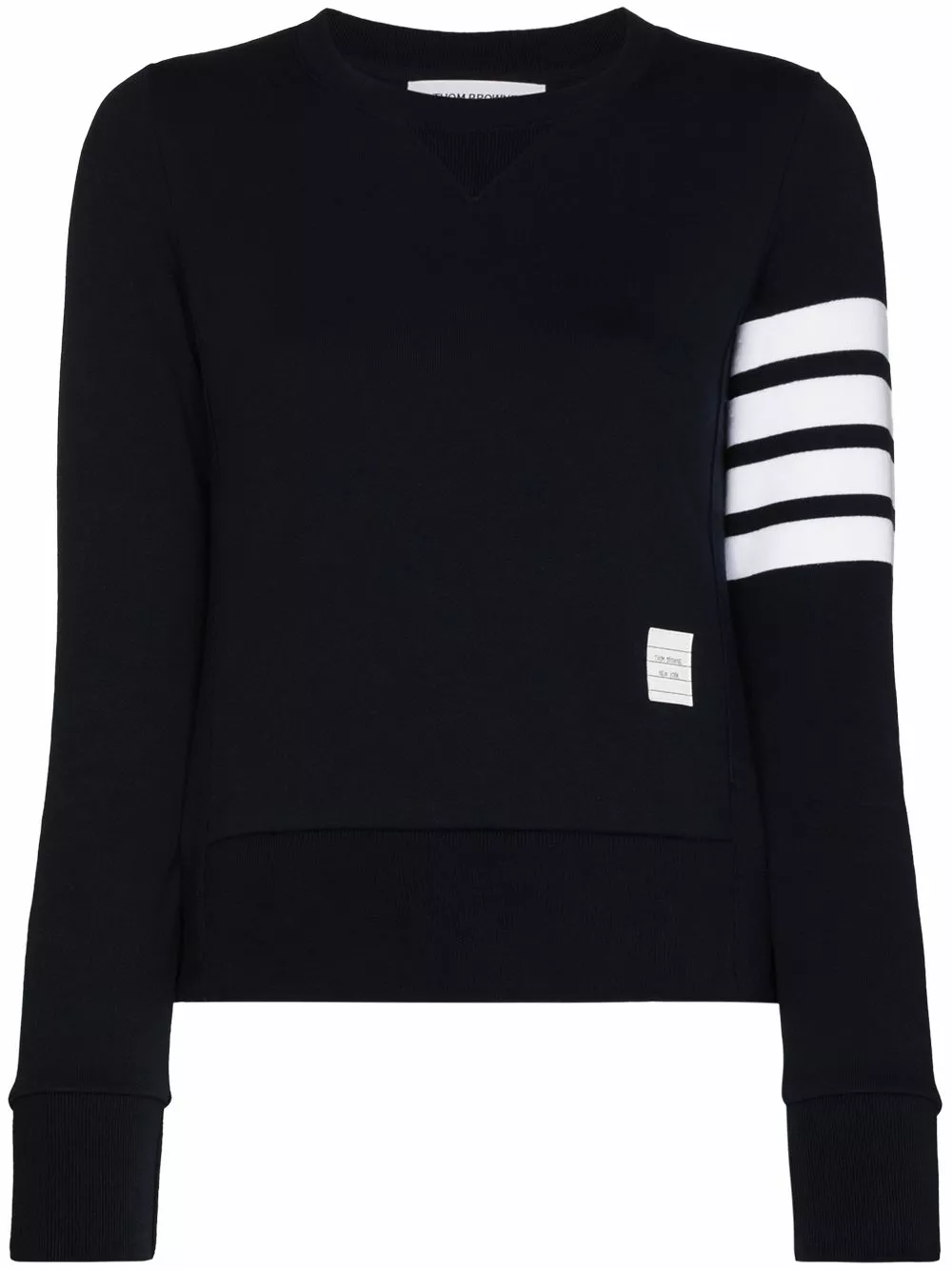 You can’t buy happiness, but you can certainly buy this Thom Browne pullover and it’s kind of the same thing. Boasting the brand’s signature 4-bar stripes, this piece is the “crème de la crème” of what it means to be fashionable. Just like that, your mood has improved 110%. Featuring a ribbed crew neck, long sleeves, a ribbed hem and cuffs, a straight hem, 4-bar stripes at the sleeve, side button fastenings, a logo patch at the front and a signature striped tab at the back of the collar.