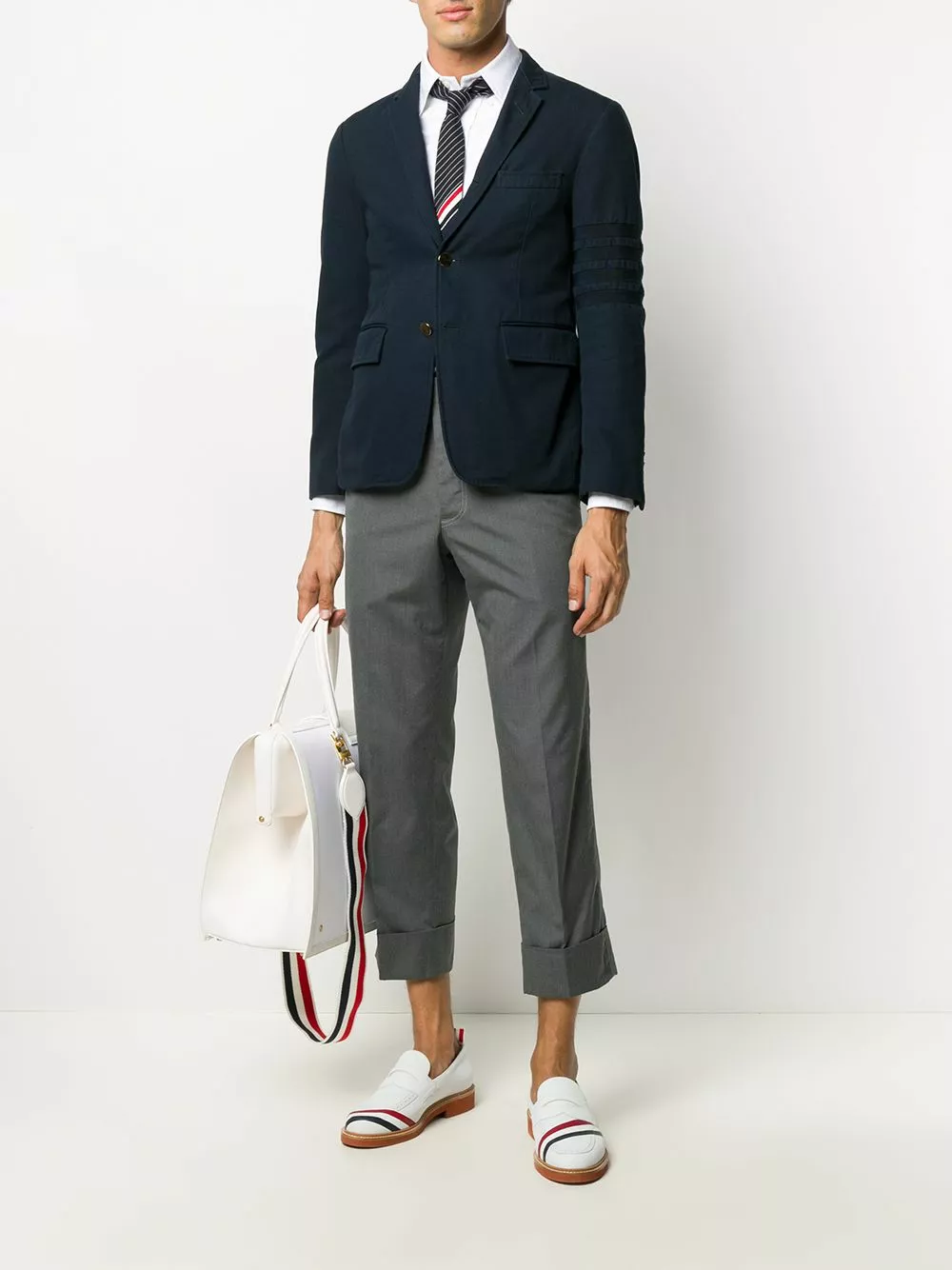 Who says that smart style can’t also have a quirky touch? Certainly not Thom Browne. Make this 4-Bar stripe shirt your new uniform.