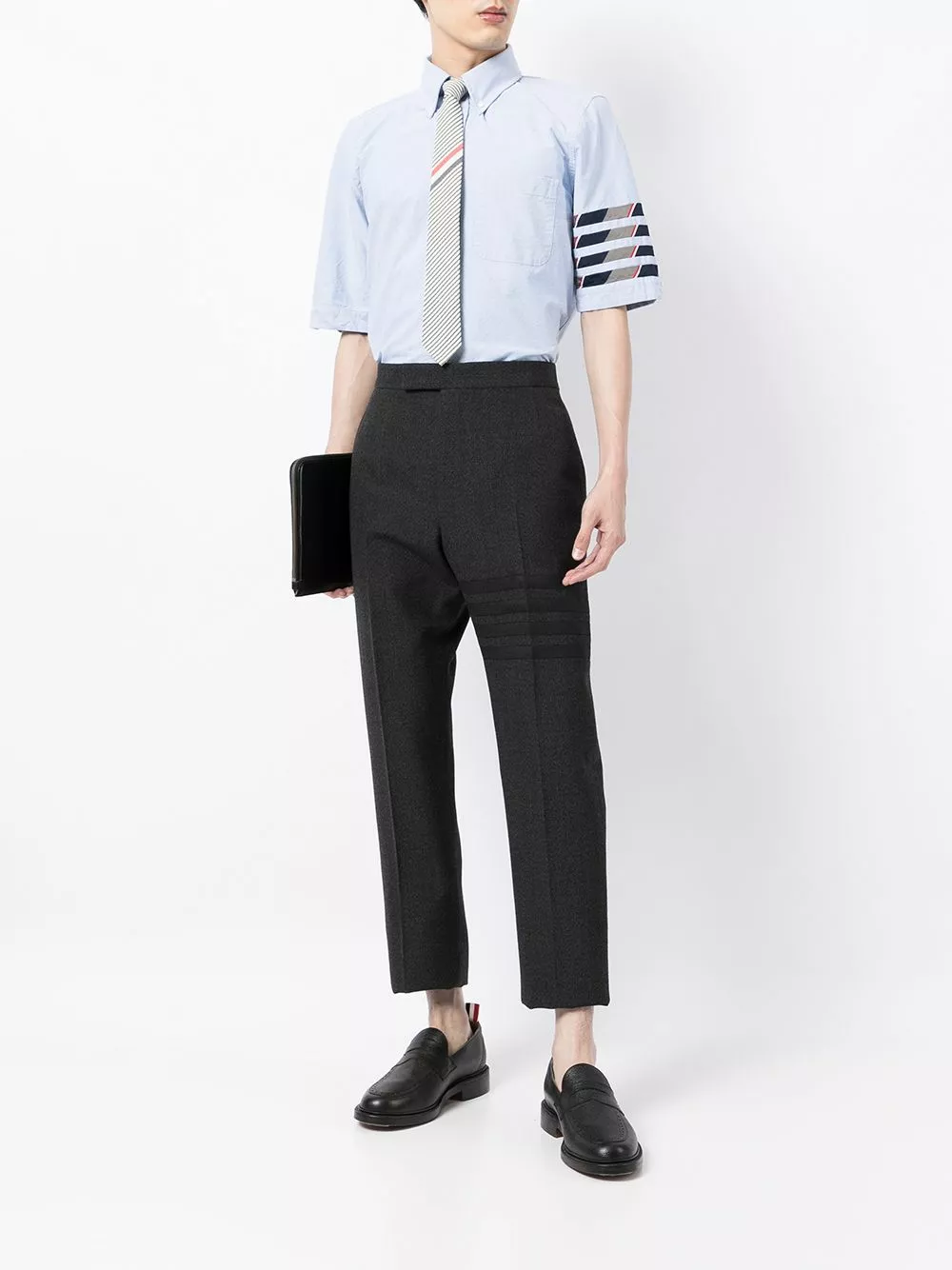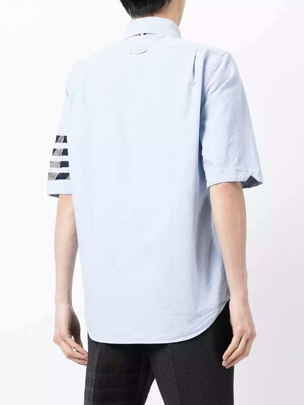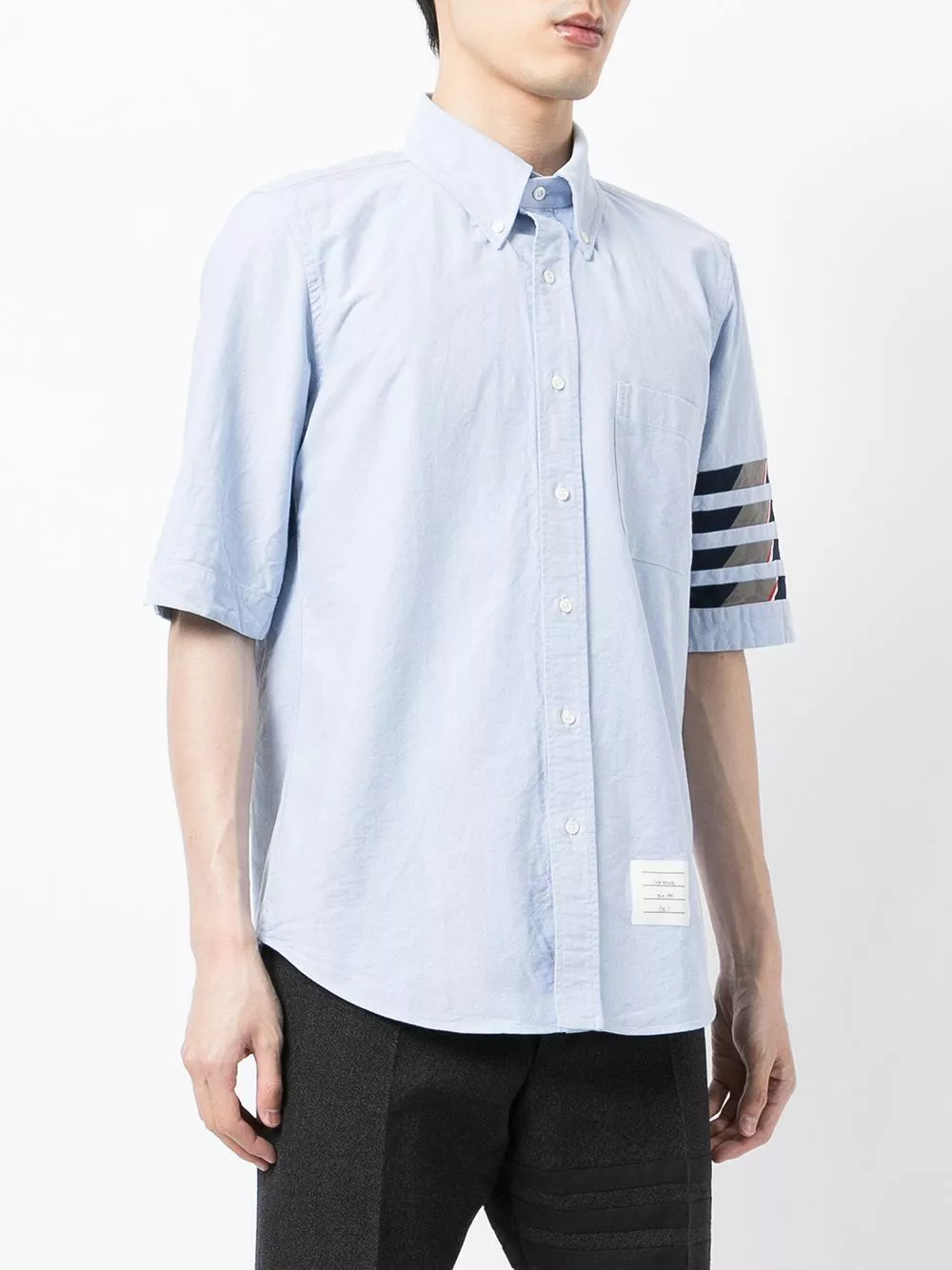 With an ethos of standing against the status quo, Thom Browne use playful proportions and signature motifs to design the modern day uniform. This classic short-sleeved Oxford shirt features a distinguishing 4-bar stripe detail on the sleeve.