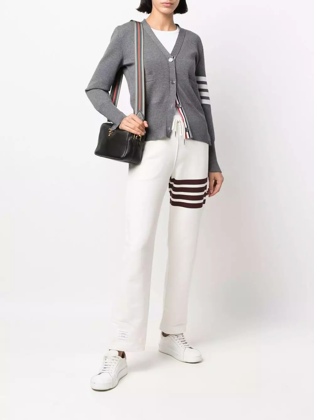 Instantly recognisable by the 4-Bar stripe, these track pants from Thom Browne feature an innovative straight-leg silhouette. This is reminiscent of the clean, straight outline of a suit, which is a signature inspiration of the brand.