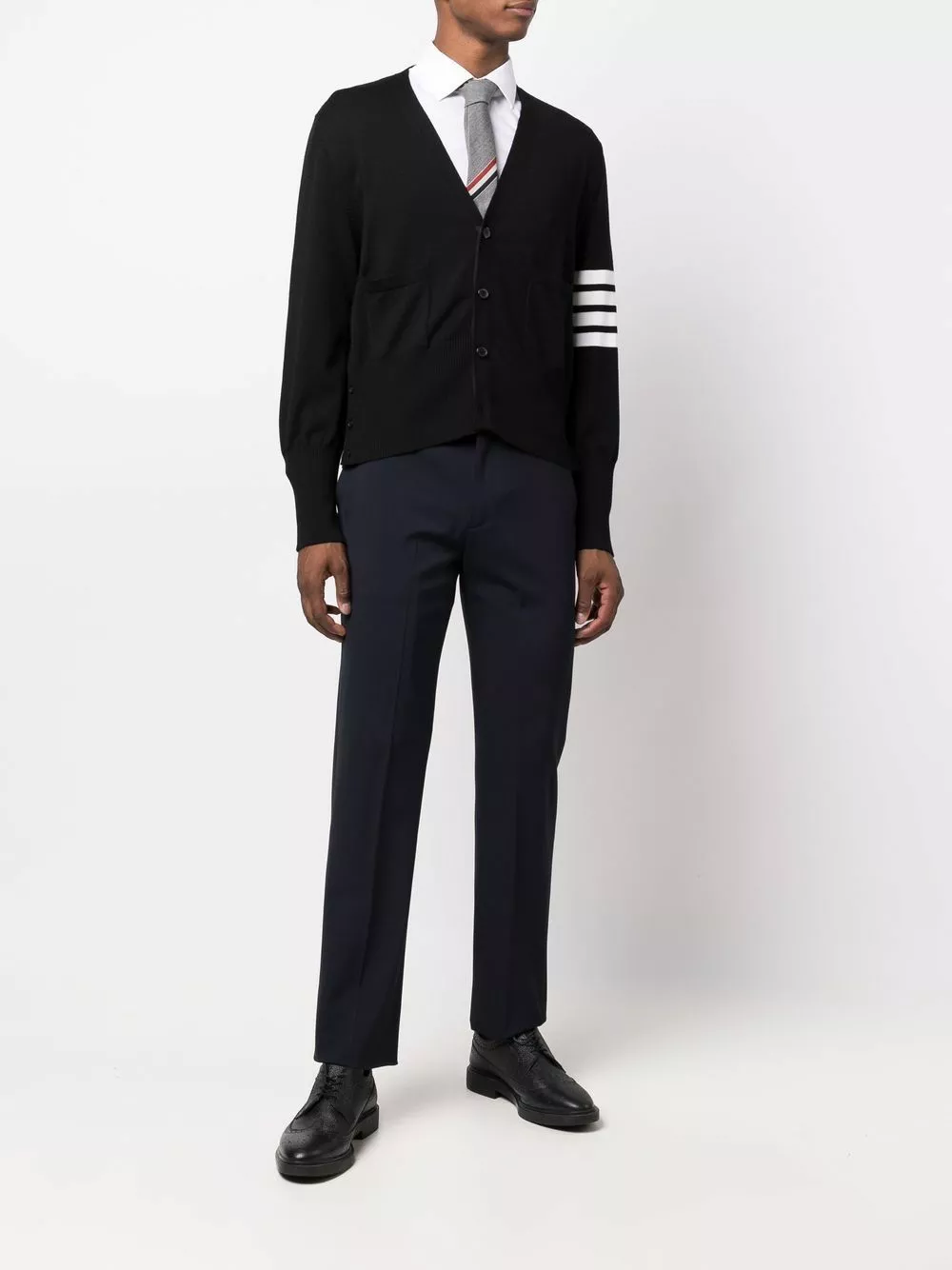 An iconic symbol of the Thom Browne house, the 4-Bar Stripe is seen in every collection. For AW21, it’s presented on its usual spot: the left upper arm of this pure merino cardigan.
