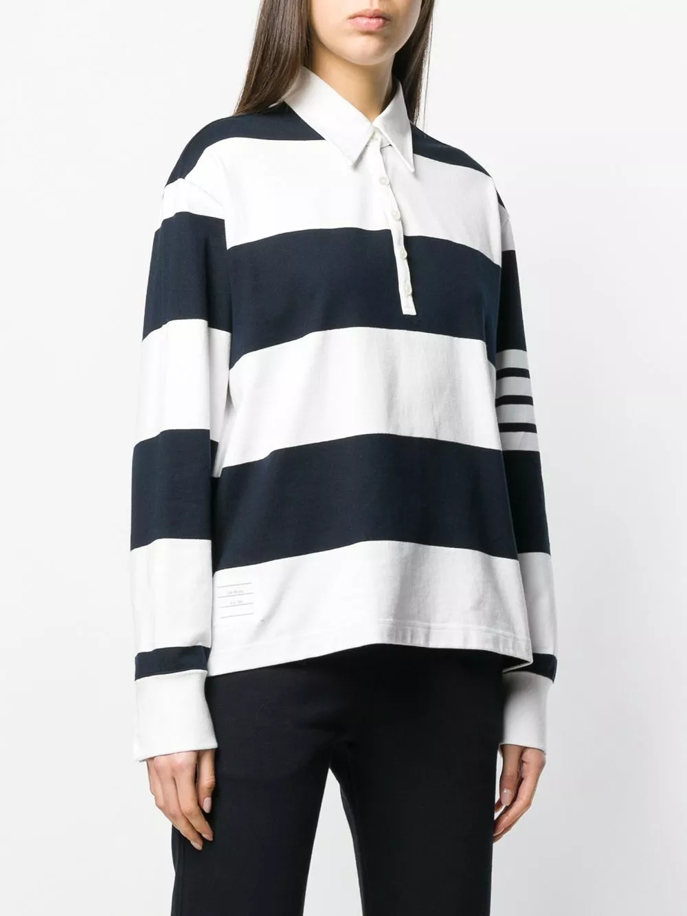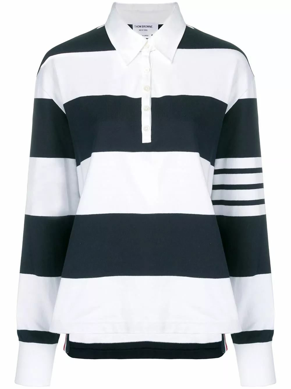 Would you choose rugby over football any day? Show everybody where your loyalties lie with this striped rugby shirt from Thom Browne. It’s a winning look.
