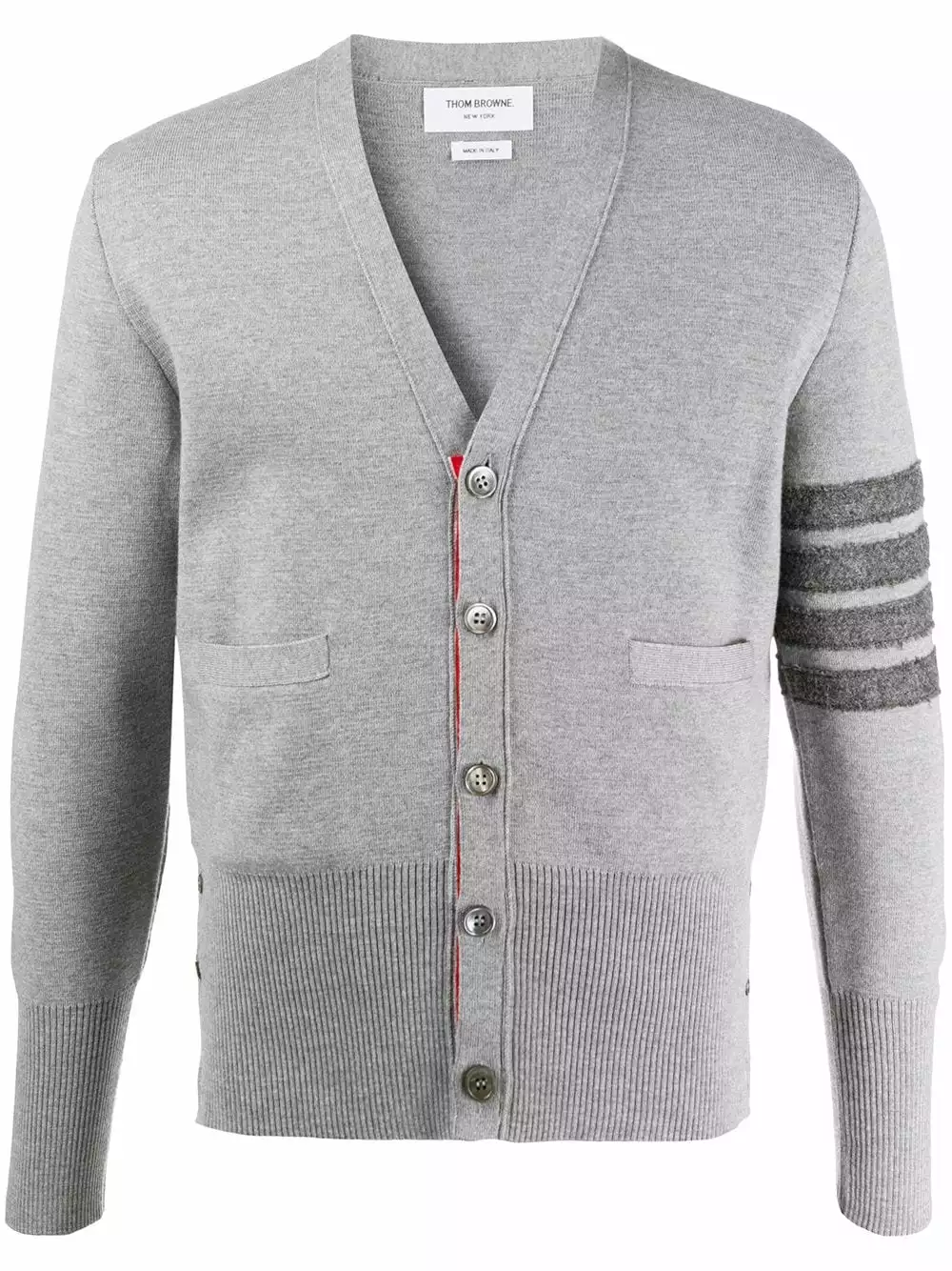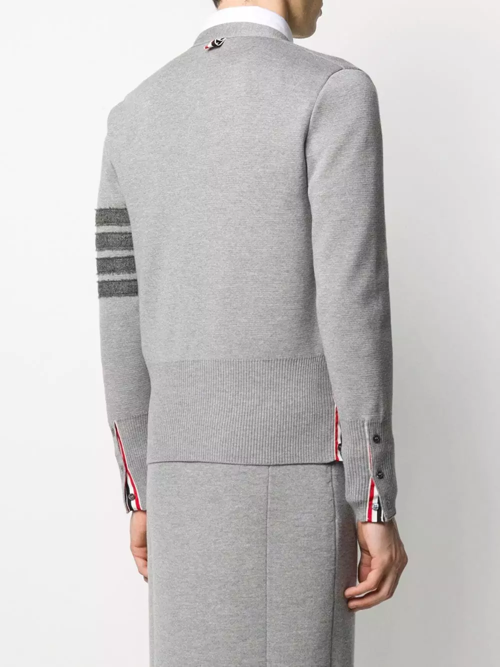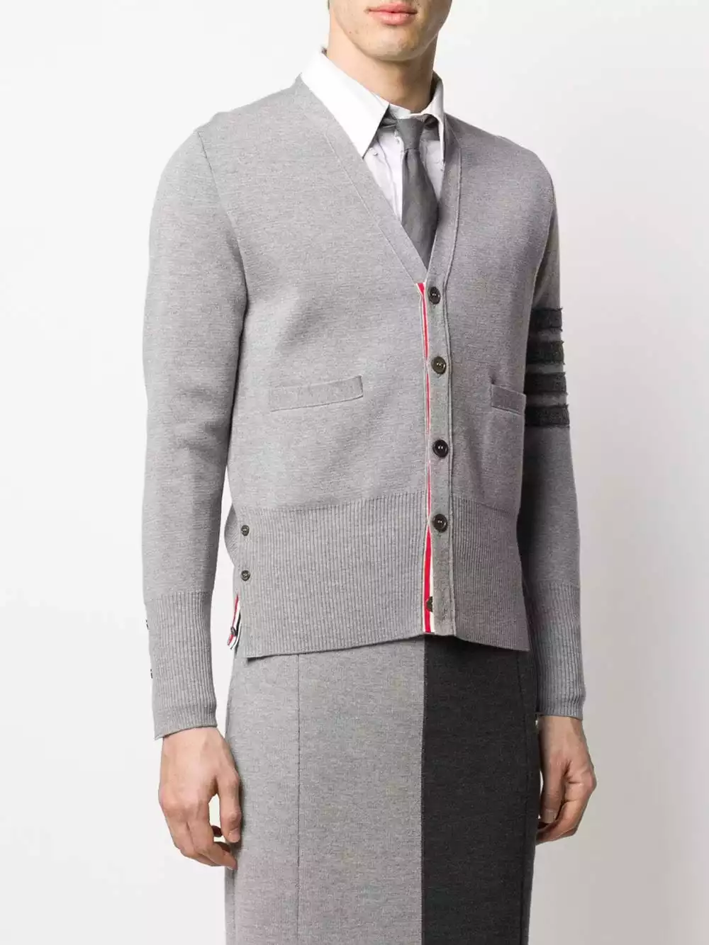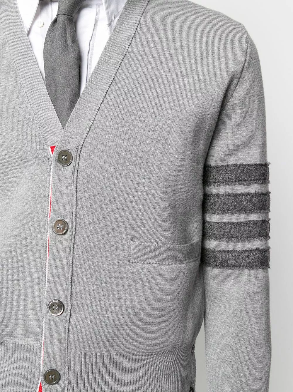 Thom Browne put their signature stamp on this 4-Bar V-neck cardigan. Made from merino wool, this button-down knit has been designed with a signature striped interior trim and the recognisable 4-Bar design to the left sleeve. It’s sure to become your newest go-to.
