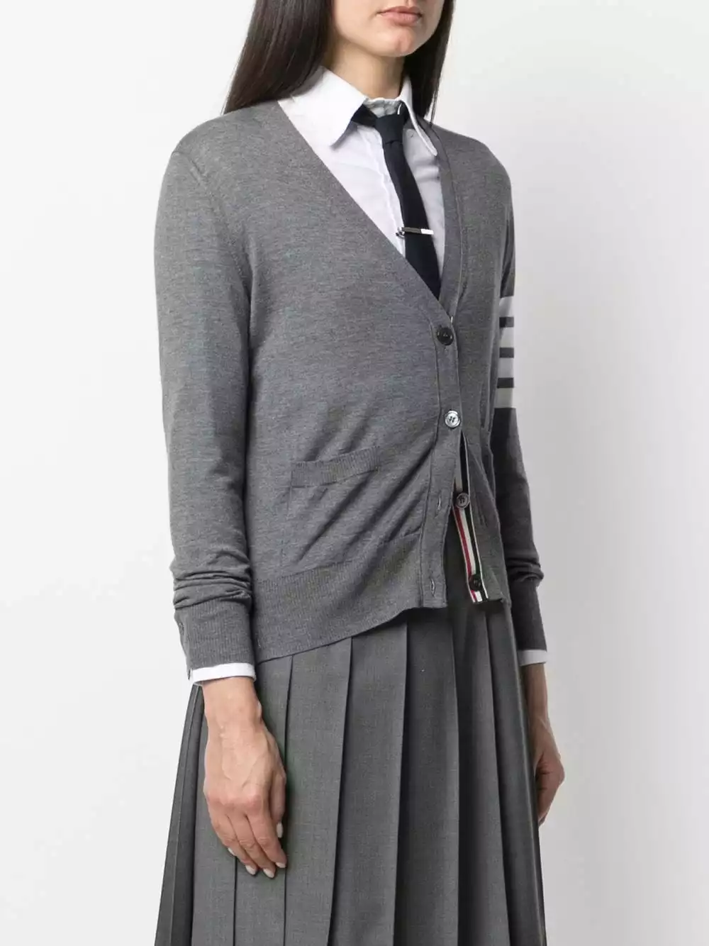Thom Browne is best known for sharp suiting, but there’s more than one way to look smart. Spun from wool, this cardigan features the brand’s signature 4-Bar stripe on a single sleeve. Button up.