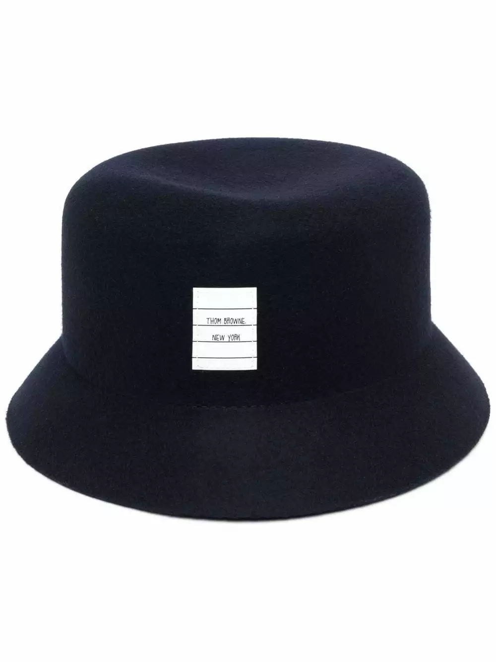For AW21, Thom Browne combines the tradition of wool with the nonchalant style of the bucket hat. Showing the brand’s characteristic shop address logo patch to the front, it contrasts with a traditional navy blue hue.