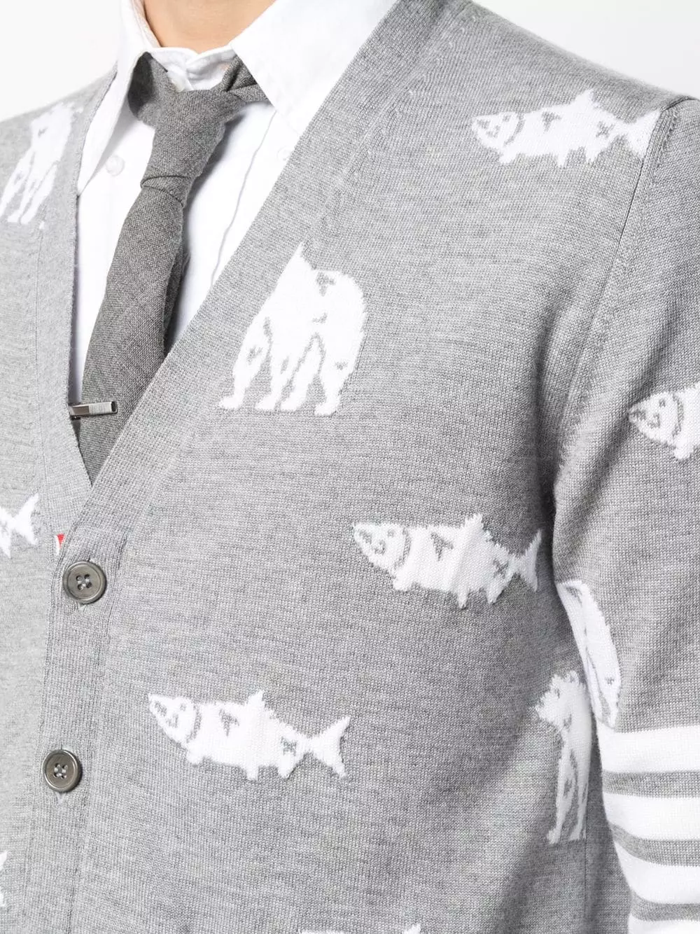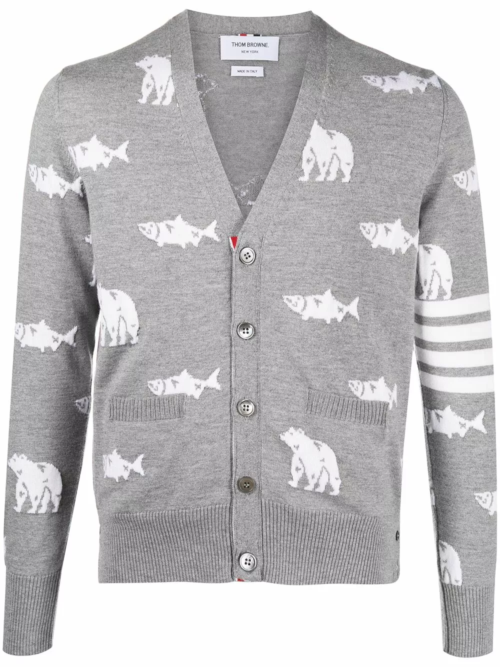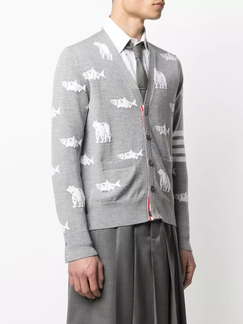 Imagine if cities had nature…they’d be perfect, right? Well, Thom Browne helps you bring a touch of nature to your daily life with this animal printed merino wool knitted cardigan. You can breathe a (cleaner) sigh of relief.