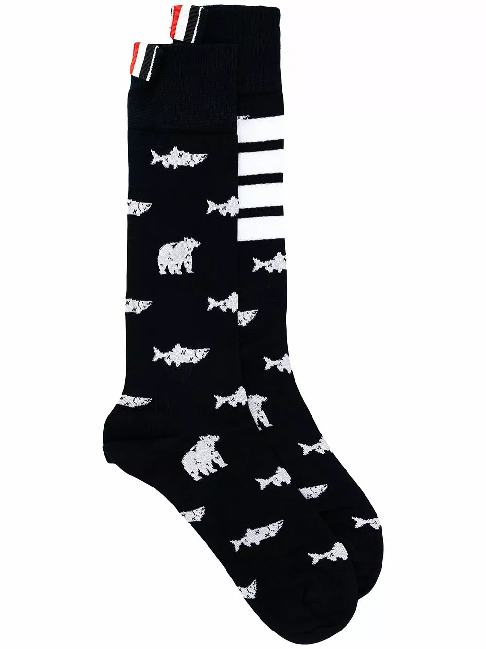 Crafted from soft cotton, these socks reflect Thom Browne’s use of animal detailing throughout the brand’s collections. This intarsia-patterned design creates a quirky look for the pair.