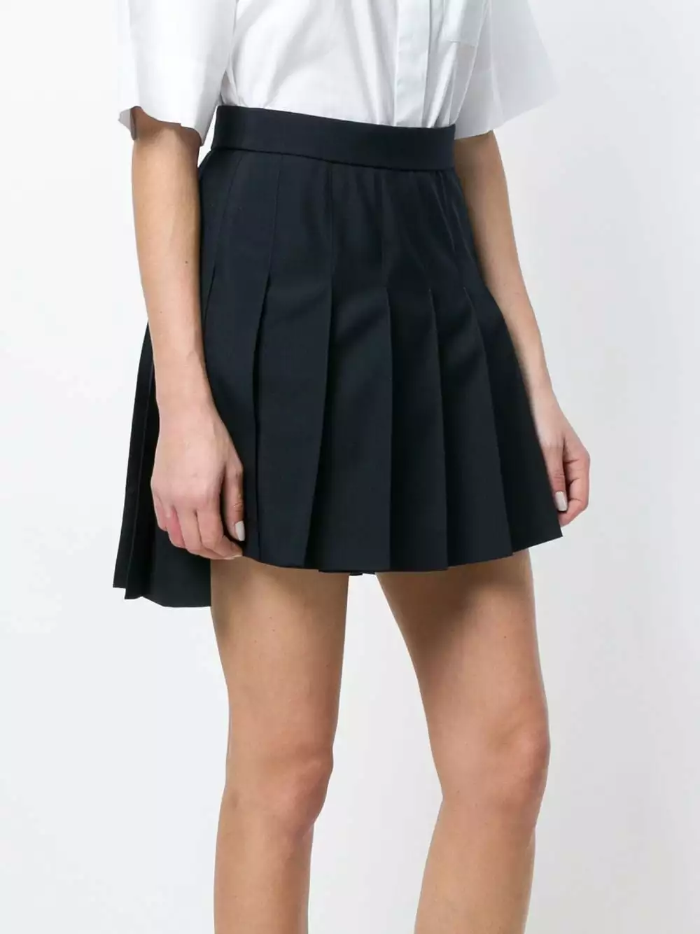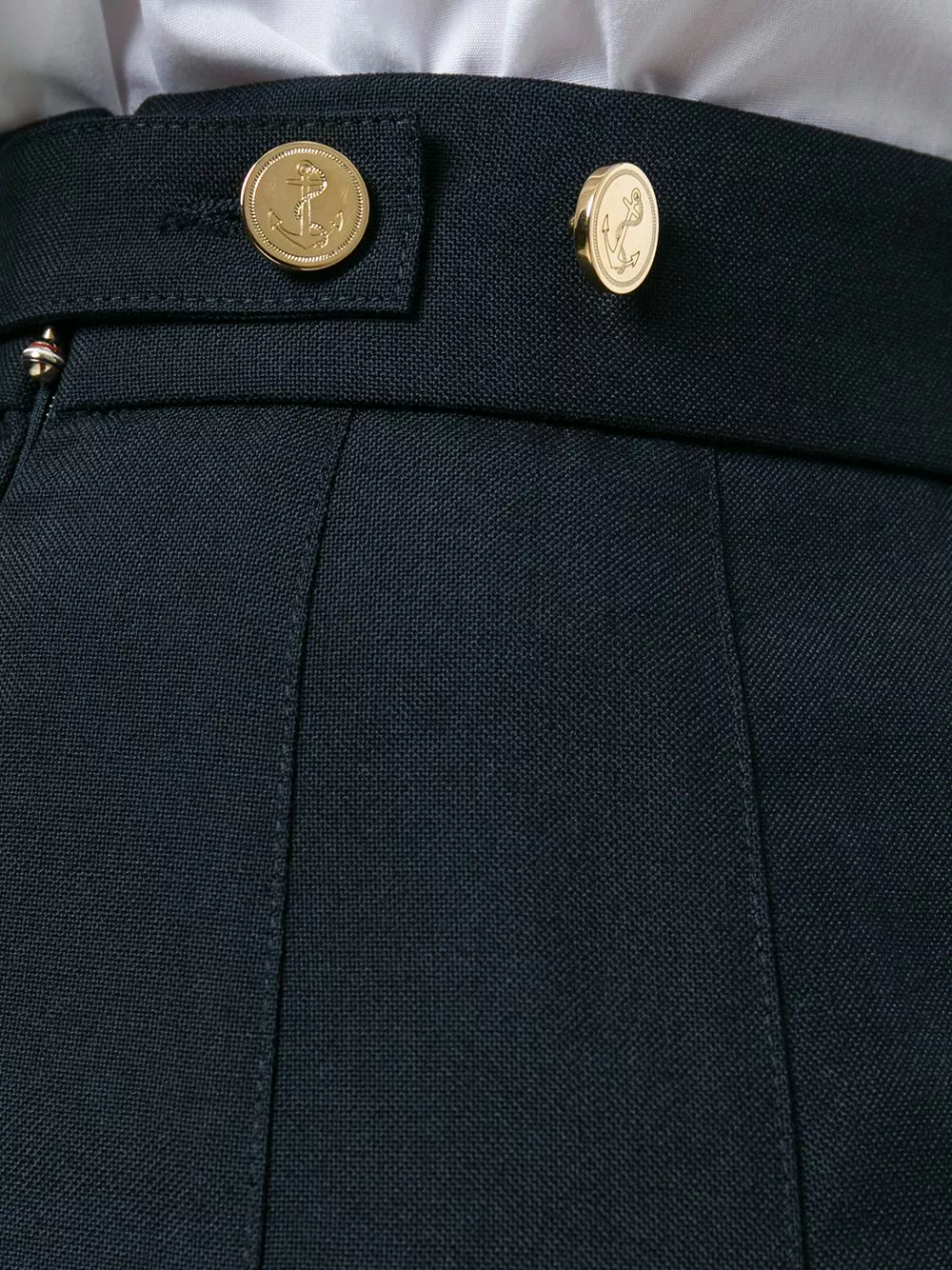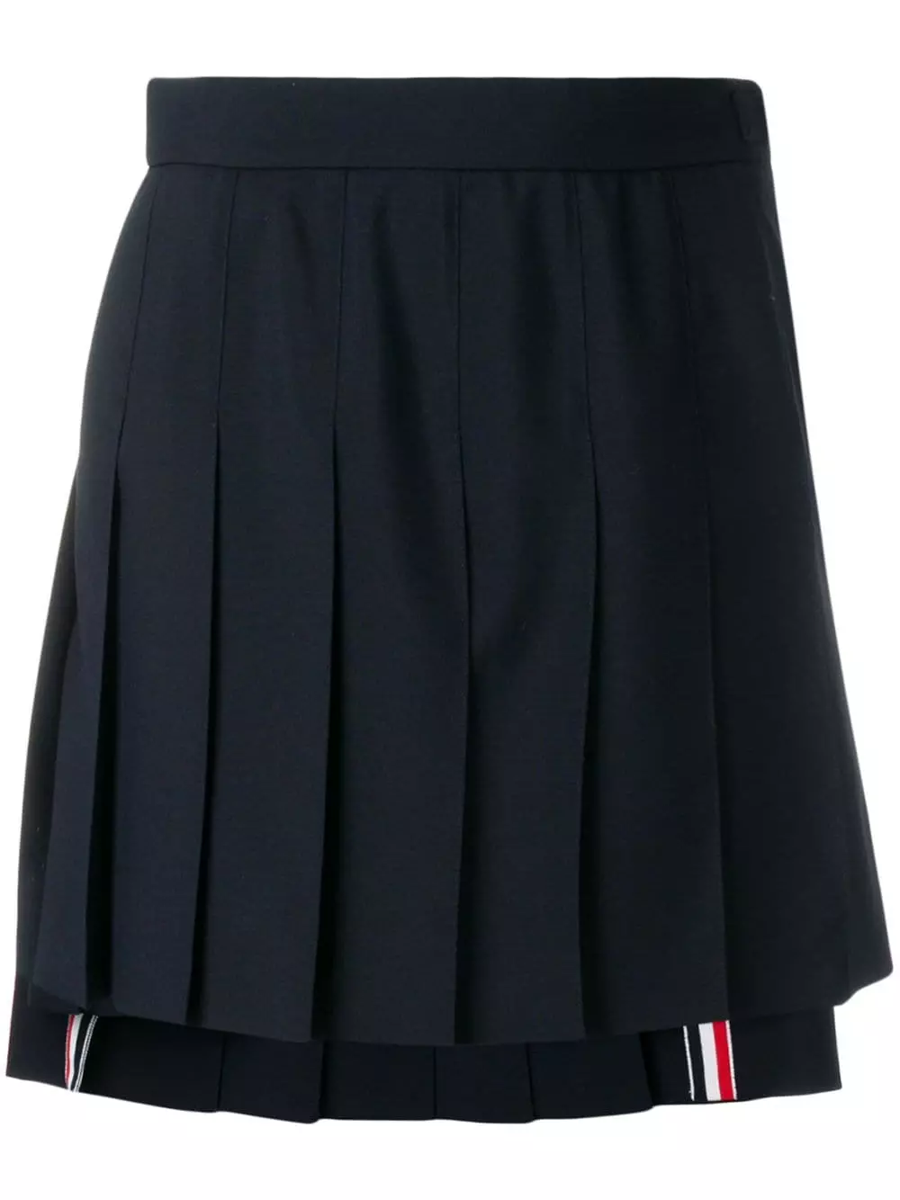 Exuding the brand’s collegiate influences, Thom Browne’s skirt is cut to a school uniform-style silhouette. Fully pleated, this navy-blue wook piece also showcases the house’s ability to transform classic profiles – note the high-low hem.