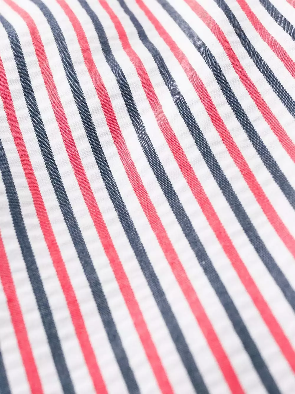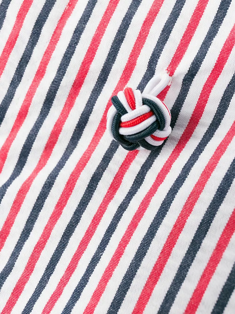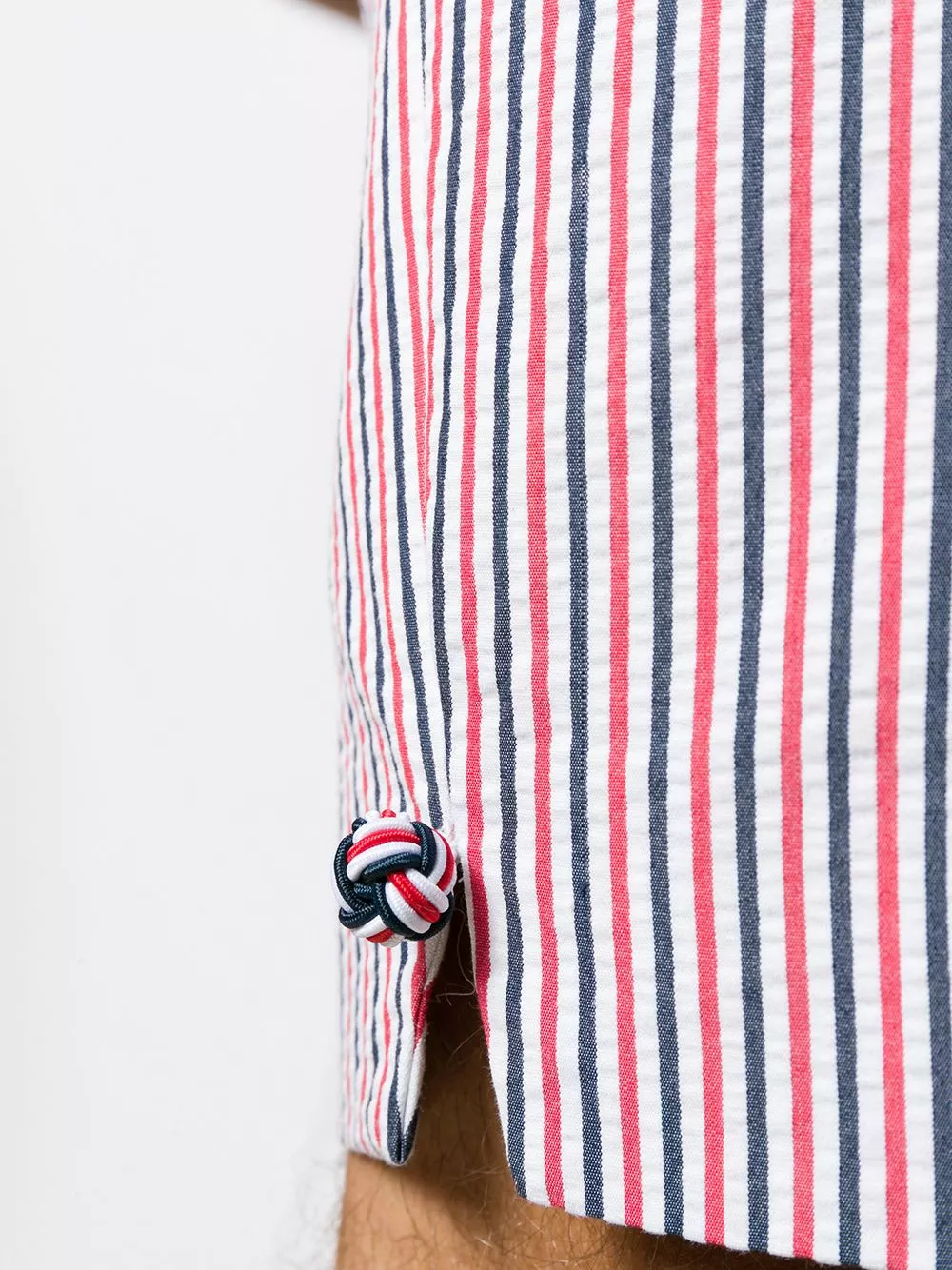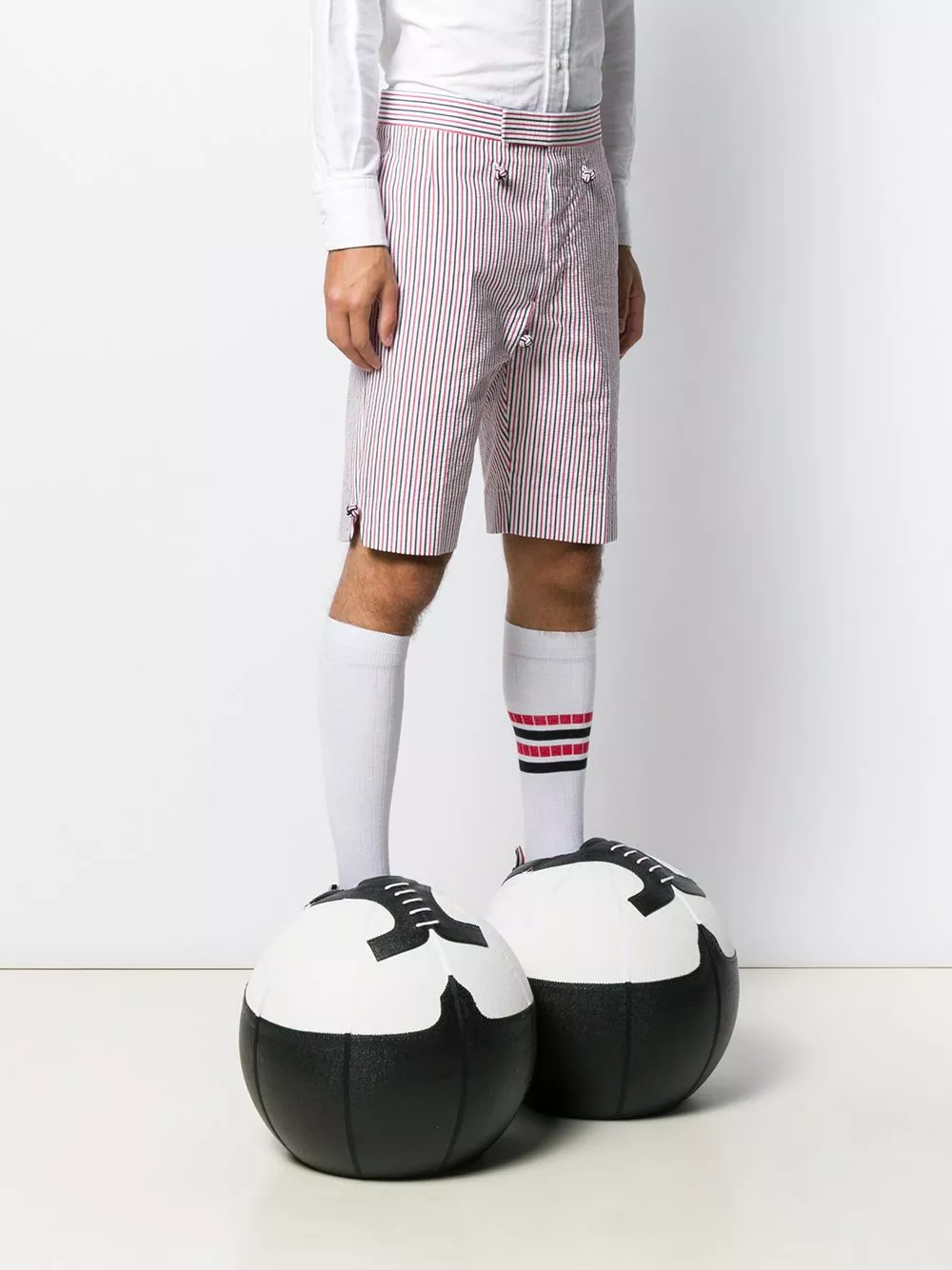 “They’re the type of items that I really hope and I do think will be in vintage stores in 20, 30 years,” says Thom Browne about his innovative garments, widely recognised by many museums and style connoisseurs around the world, as seen in these red, white and navy blue cotton backstrap striped shorts.