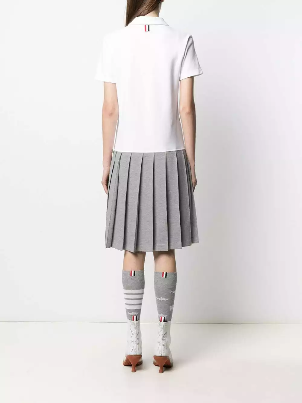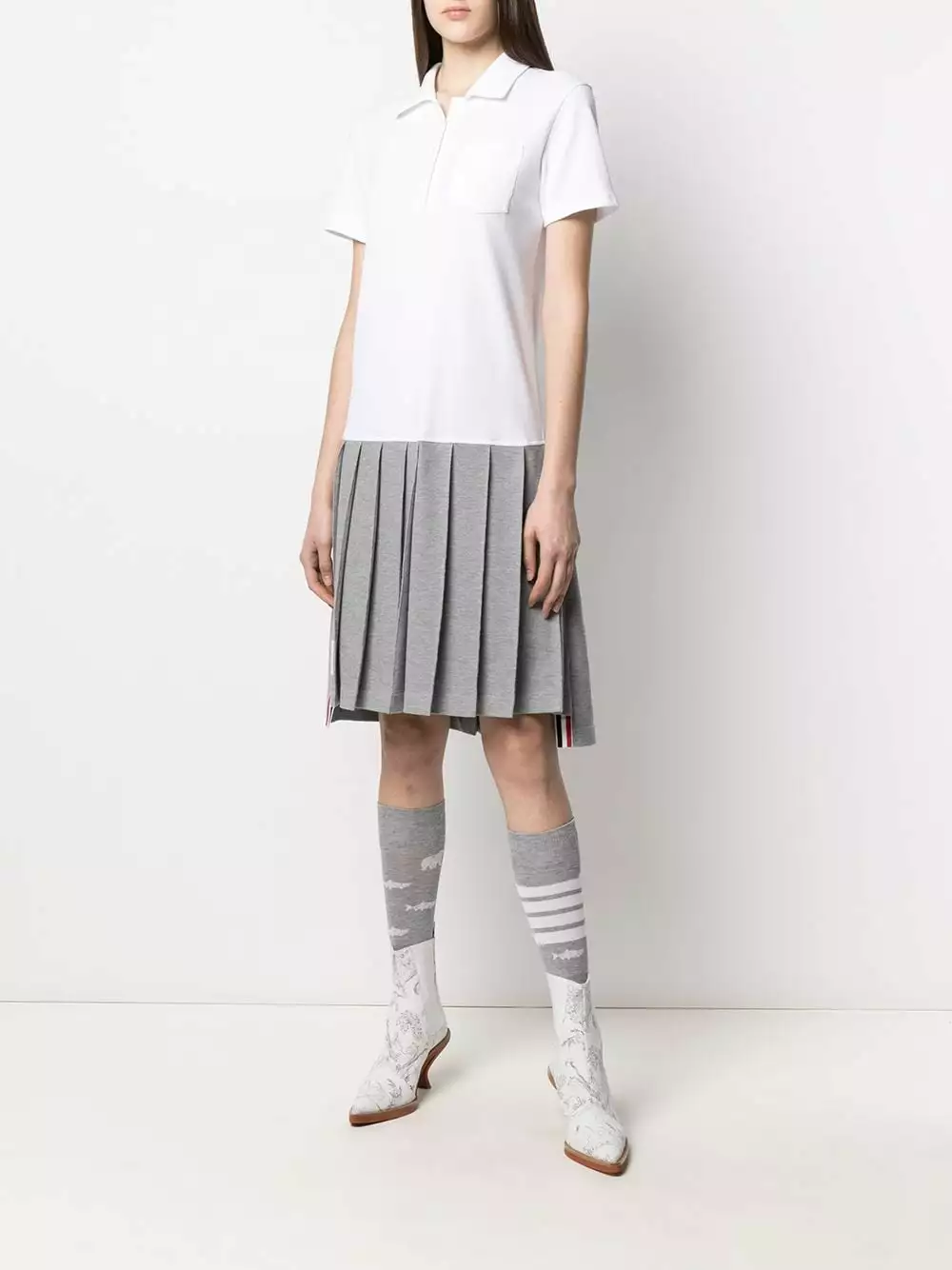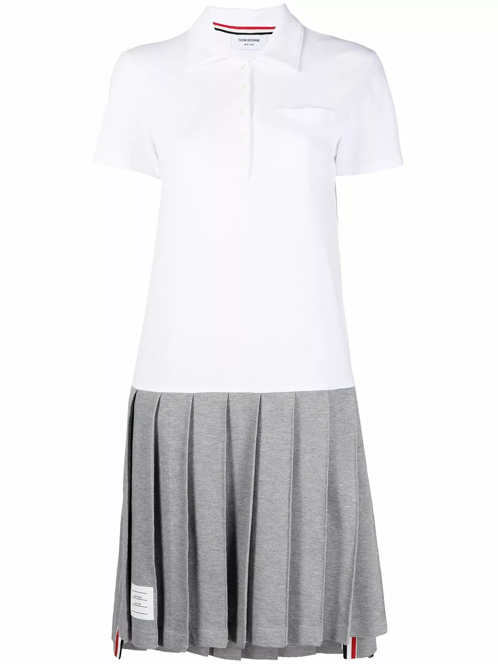 It’s time to get on your tennis whites on and show them what your made of. Fabricated from breathable cotton, this knee-length bi-colour polo shirt dress from Thom Browne will help you clean up at the courts. Ready, set, serve.
