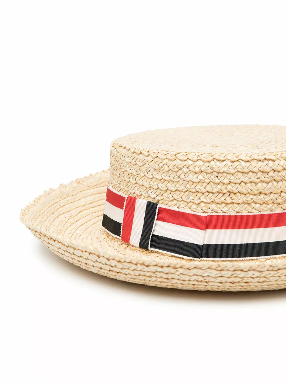 Heading to Henley? Look the part in this braided boater hat from Thom Browne. Now you’re regatta ready! Featuring a grosgrain band.
